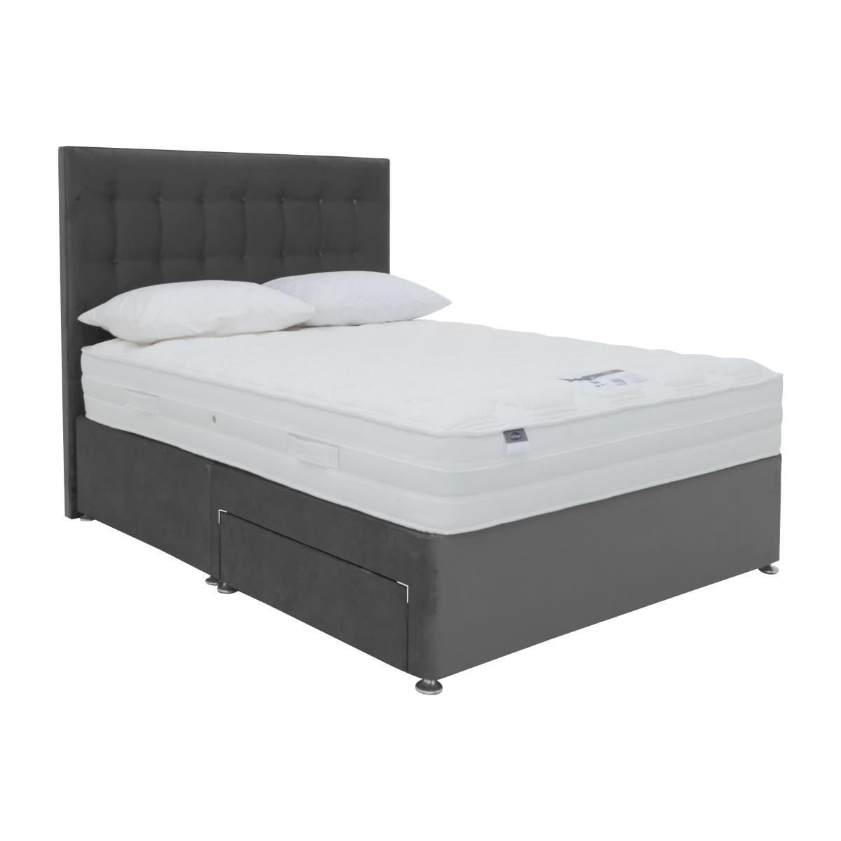 Who knew eco-friendly beds could be so comfortable? Silentnight’s Eco ranges pamper you from head to toe with their unique Miropocket or Miracoil spring systems in a choice of comfort and firmness levels plus a breathable, hypoallergenic Eco Comfort Fibre™ layer. This innovative layer is made from 100% recycled bottles, and allows natural airflow so you stay fresh and cool all night long. The platform top divan bases have drawer or ottoman storage or a combination of both and, like the headboards, come in a choice of attractive shades. Made in the UK for Furniture Village. Luxuriously comfy eco-friendly divan bed at a great value price. Patented pocket springs and cooling Eco Comfort Fibre™ layer. Platform top base with choice of drawer storage. Headboard is an optional extra. Sleep in indulgent comfort and help the environment at the same time, with the Silentnight Eco Pocket Plus Divan Set. It pampers you from head to toe with 800 zoned Mirapocket pocket springs in king size, a layer of 1000 responsive mini-springs, and a soft micro-quilted cover. And it takes the comfort even further with its Eco Comfort Fibre™ layer that’s temperature regulating, breathable and hypoallergenic – allowing natural airflow. This layer is made from 100% recycled bottles – an innovative and effective way to stay fresh and cool while saving waste from going to landfill. The platform top divan base comes in a selection of sophisticated colours, and with a choice of drawer storage. To complete your bed you can add one of the stylish headboards from the range, available to buy separately. British made by Silentnight, exclusively for Furniture Village. Part of the Silentnight Eco Pocket Plus range which includes a standalone mattress. Product images are representative. Find out more. Did you know?. This divan set comes with a no-turn mattress, which should be rotated every two months. The mattress should be aired for four hours after delivery to freshen and remove any aroma from storage. It may take time for your mattress to attain its full size once the springs have settled to the correct position. This is due to the mattress being upright during transit. Settlement of fillings and indentations caused by body weight compressing the fillings are natural and not considered defects.