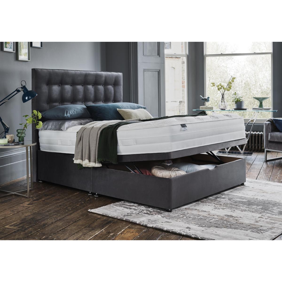 Who knew eco-friendly beds could be so comfortable? Silentnight’s Eco ranges pamper you from head to toe with their unique Miropocket or Miracoil spring systems in a choice of comfort and firmness levels plus a breathable, hypoallergenic Eco Comfort Fibre™ layer. This innovative layer is made from 100% recycled bottles, and allows natural airflow so you stay fresh and cool all night long. The platform top divan bases have drawer or ottoman storage or a combination of both and, like the headboards, come in a choice of attractive shades. Made in the UK for Furniture Village. Luxuriously comfy eco-friendly divan bed at a great value price. Temperature regulating, hypoallergenic Eco Comfort Fibre™ layer. Platform top, with a half ottoman base. Headboard is an optional extra. Sleep in indulgent comfort and help the environment at the same time, with the Silentnight Eco Pocket Plus Divan Set. It pampers you from head to toe with a combination of Silentnight's unique Mirapocket spring system with 800 zoned Mirapocket pocket springs in king size, a layer of 1000 responsive mini-springs, and a soft micro-quilted cover for the ultimate in support and comfort. The mattress has an Eco Comfort Fibre™ layer that’s temperature regulating, breathable and hypoallergenic – allowing natural airflow. This layer is made from 100% recycled bottles – so it helps the planet, and you, to stay healthy and cool. The platform top divan base comes in a choice of shades, with space-saving half ottoman storage that lets you store spare clothes or bedding out of sight. Finish your bed with one of the stylish headboards, available to buy separately. British made by Silentnight, exclusively for Furniture Village. Part of the Silentnight Eco Pocket Plus range which includes a standalone mattress. Product images are representative. Find out more. Did you know?. This divan set comes with a no-turn mattress, which should be rotated every two months. The mattress should be aired for four hours after delivery to freshen and remove any aroma from storage. It may take time for your mattress to attain its full size once the springs have settled to the correct position. This is due to the mattress being upright during transit. Settlement of fillings and indentations caused by body weight compressing the fillings are natural and not considered defects. Product images are representative. Find out more.