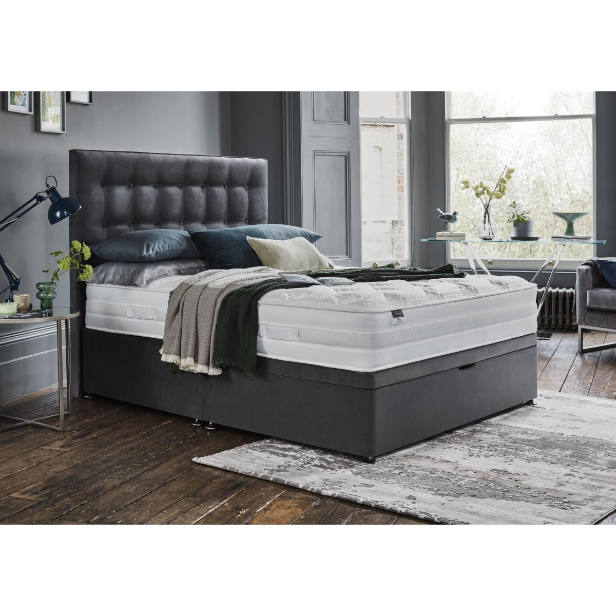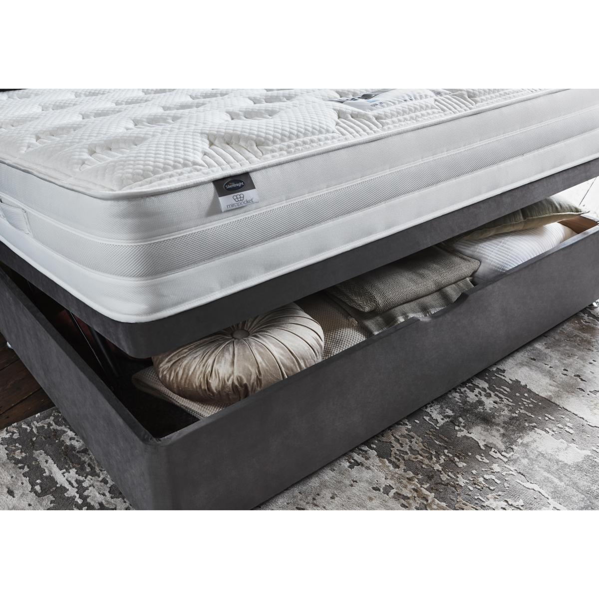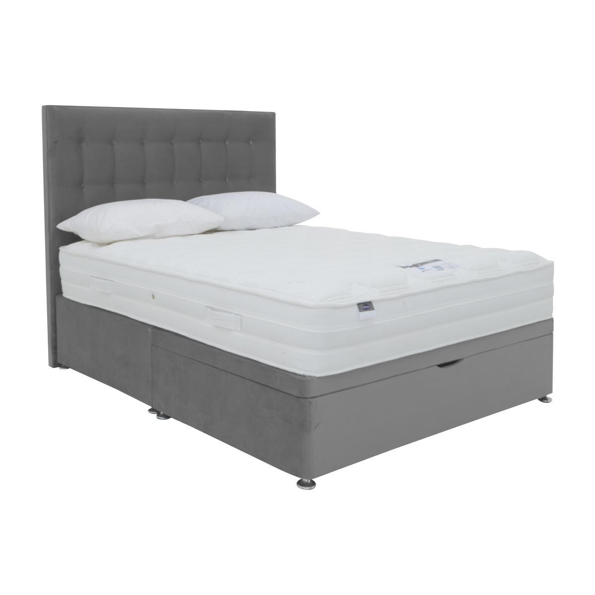 Luxuriously comfy eco- friendly divan bed at a great value price Temperature regulating, hypoallergenic Eco Comfort Fibre layer Platform top, with a half ottoman base. Sleep in indulgent comfort and help the environment at the same time, with the Silentnight Eco Pocket Plus Divan Set. It pampers you from head to toe with a combination of Silentnight's unique Mirapocket spring system with 800 zoned Mirapocket pocket springs in king size, a layer of 1000 responsive mini- springs, and a soft micro- quilted cover for the ultimate in support and comfort. The mattress has an Eco Comfort Fibre layer thats temperature regulating, breathable and hypoallergenic allowing natural airflow. This layer is made from 100% recycled bottles so it helps the planet, and you, to stay healthy and cool. The platform top divan base comes in a choice of shades, with space- saving half ottoman storage that lets you store spare clothes or bedding out of sight. Finish your bed with one of the stylish headboards, available to buy separately. British made by Silentnight, exclusively for Furniture Village. Part of the Silentnight Eco Pocket Plus range which includes a standalone mattress. Product images are representative. Find out more Did you know? This divan set comes with a no- turn mattress, which should be rotated every two months. The mattress should be aired for four hours after delivery to freshen and remove any aroma from storage. It may take time for your mattress to attain its full size once the springs have settled to the correct position. This is due to the mattress being upright during transit. Settlement of fillings and indentations caused by body weight compressing the fillings are natural and not considered defects. Product images are representative. Find out more