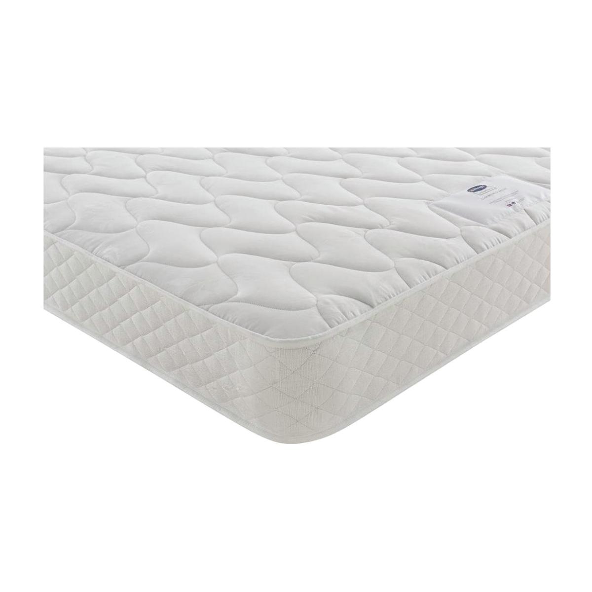 Silentnight's open coil spring system with 323 springs provides support to your body from head to toe for less partner disturbance. Traditionally handcrafted in the UK using hypoallergenic fillings, this mattress is tried and tested in Silentnight's in-house sleep lab to guarantee the quality you'd expect from the brand. This Essentials Microquilt is a double sided mattress, so you'll need to rotate and turn regularly to ensure longevity. With a firm comfort, this mattress is great for people who sleep on their back mostly. At Silentnight, it's essential that everyone experiences a great night's sleep. That's why we've put our 70 years of bed making expertise into our new great value mattresses called essentials. Essentials mattresses are everything you expect from the UK's most trusted bed brand, incorporating quality springs and fabrics for all night long support and comfort. At Argos Home we want you to get the best night's sleep possible, so we offer a 100 night comfort promise on our mattresses. Try your new mattress for up to 100 nights and if you aren't sleeping soundly, we'll offer you an exchange for one that suits you better. Part of the Essentials collection. Firm feel. Open coil mattress with 323 springs. Damask cover with quilted finish. No roll together. Anti allergy. Mattress size W150, L200, D21cm. Flip mattress regularly. Made in the UK. General information: Manufacturer's 5 year parts and labour guarantee.