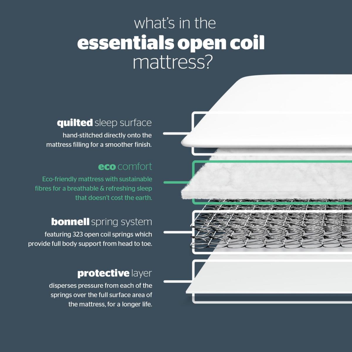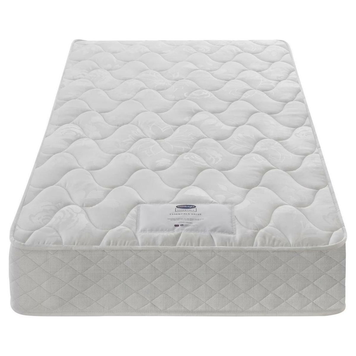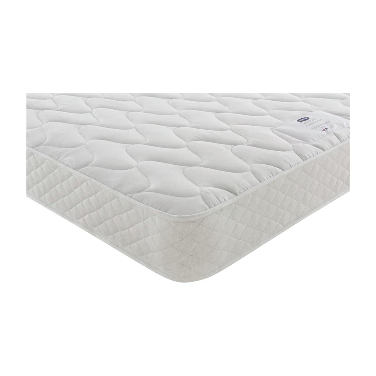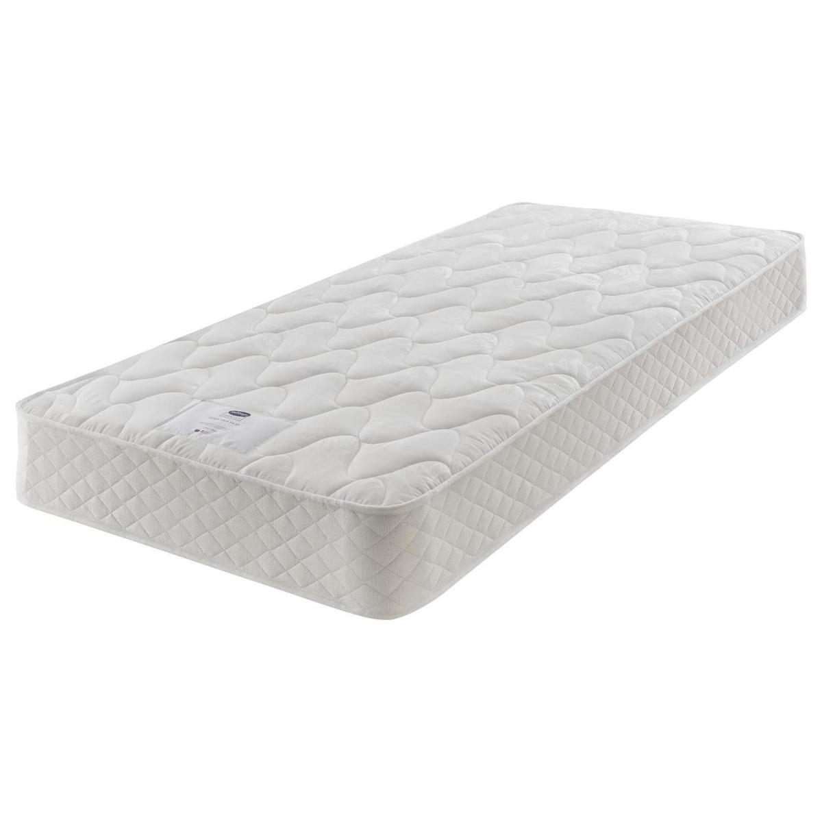 Silentnight's open coil spring system with 323 springs provides support to your body from head to toe for less partner disturbance. Traditionally handcrafted in the UK using hypoallergenic fillings, this mattress is tried and tested in Silentnight's in-house sleep lab to guarantee the quality you'd expect from the brand. This Essentials Microquilt is a double sided mattress, so you'll need to rotate and turn regularly to ensure longevity. With a firm comfort, this mattress is great for people who sleep on their back mostly. At Silentnight, it's essential that everyone experiences a great night's sleep. That's why we've put our 70 years of bed making expertise into our new great value mattresses called essentials. Essentials mattresses are everything you expect from the UK's most trusted bed brand, incorporating quality springs and fabrics for all night long support and comfort. At Argos Home we want you to get the best night's sleep possible, so we offer a 100 night comfort promise on our mattresses. Try your new mattress for up to 100 nights and if you aren't sleeping soundly, we'll offer you an exchange for one that suits you better. Part of the Essentials collection. Firm feel. Open coil mattress with 323 springs. Damask cover with quilted finish. No roll together. Anti allergy. Mattress size W90, L190, D21cm. Flip mattress regularly. Made in the UK. General information: Manufacturer's 5 year guarantee.
