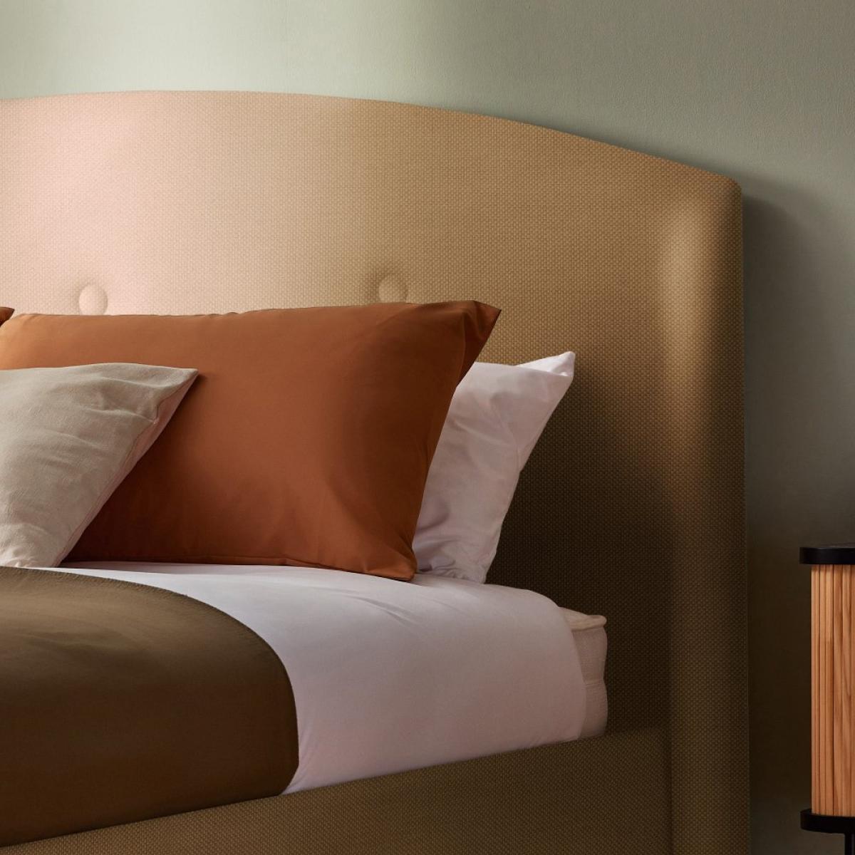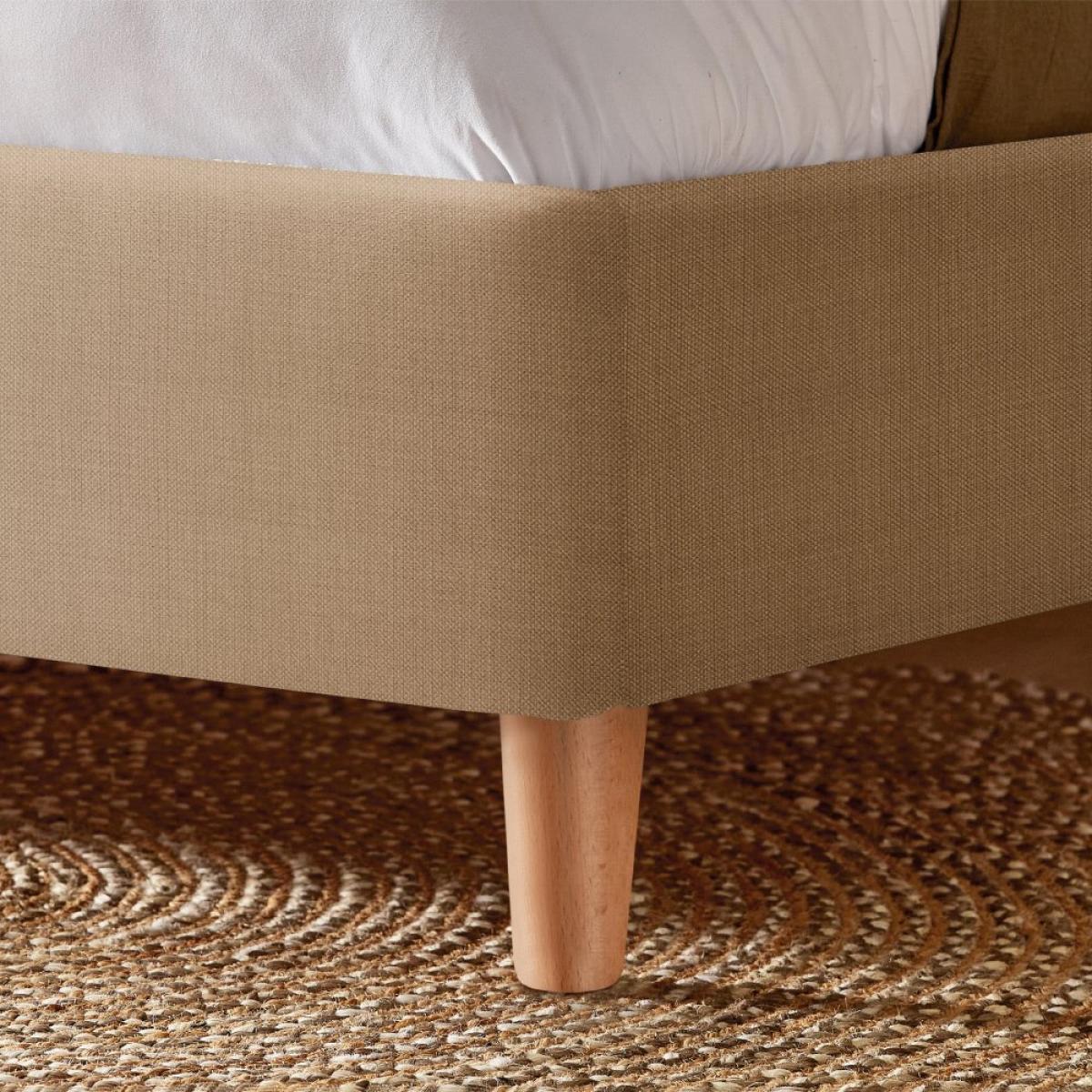 Bring a touch of peaceful elegance to your bedroom with the Silentnight Evana bedframe. Its sophisticated design and upholstery add an element of luxury to any space. Handcrafted here in the UK, using premium upholstery fabric, the Evana bedframe will elevate any existing decor. Complete with three tufted buttons, a tall, padded headboard for optimum comfort and resting on crafted wooden legs, your bedroom will feel brand new with the addition of the Evana. Available in a range of beautiful fabric choices. Adjustable side rails can be rotated to accommodate a deep or shallow mattresses. Whilst the wooden slatted base provides excellent mattress support and airflow. Our made to order furniture service means you can choose from different options, such as fabric, size and shape to create a beautiful bespoke piece of furniture. Because this piece is designed just for you, you might notice the delivery time is a little longer than usual. Bring a touch of peaceful elegance with Evana's sophisticated design and upholstery. Available in a range of fabric colours including our unique Olive Vintage Velvet for a luxurious rich palette and a calming Boucle that creates a peaceful look. Part of the Evana collection. Upholstered frame. Flat weave fabric - 51% acrylic and 20% cotton. Wooden feet. Base with wooden slats. No storage. Size W163.5, L215.5, H32.5cm. Total maximum user weight 220kg. Self-assembly - 2 people recommended. Package Dimensions: Package 1 dimensions: H103, W179, D19cm. Package 1 weight: 21kg. Package 2 dimensions: H25, W24, D223cm. Package 2 weight: 30.5kg. Package 3 dimensions: H29, W152, D8.5cm. Package 3 weight: 15.5kg. General Information: By choosing FSC certified products, you are supporting responsible management of the world's forests. Manufacturer's 5 year parts and labour guarantee.