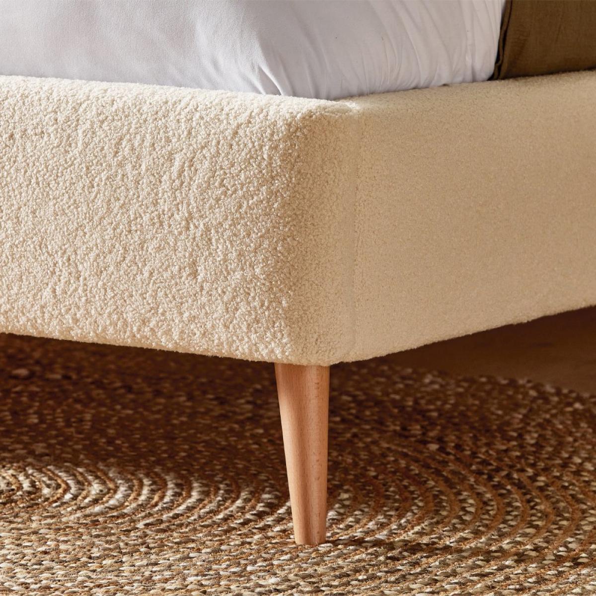 Bring a touch of peaceful elegance to your bedroom with the Silentnight Evana bedframe. Its sophisticated design and upholstery add an element of luxury to any space. Handcrafted here in the UK, using premium upholstery fabric, the Evana bedframe will elevate any existing decor. Complete with three tufted buttons, a tall, padded headboard for optimum comfort and resting on crafted wooden legs, your bedroom will feel brand new with the addition of the Evana. Available in a range of beautiful fabric choices. Adjustable side rails can be rotated to accommodate a deep or shallow mattresses. Whilst the wooden slatted base provides excellent mattress support and airflow. Our made to order furniture service means you can choose from different options, such as fabric, size and shape to create a beautiful bespoke piece of furniture. Because this piece is designed just for you, you might notice the delivery time is a little longer than usual. Bring a touch of peaceful elegance with Evana's sophisticated design and upholstery. Available in a range of fabric colours including our unique Olive Vintage Velvet for a luxurious rich palette and a calming Boucle that creates a peaceful look. Part of the Evana collection. Upholstered frame. Boucle fabric - 51% acrylic and 20% cotton. Wooden feet. Base with wooden slats. No storage. Size W193.5, L215.5, H36.5cm. Total maximum user weight 220kg. Self-assembly - 2 people recommended. Package Dimensions: Package 1 dimensions: H103, W209, D19cm. Package 1 weight: 25.5kg. Package 2 dimensions: H25, W24, D223cm. Package 2 weight: 32kg. Package 3 dimensions: H29, W182, D8.5cm. Package 3 weight: 19kg. General Information: By choosing FSC certified products, you are supporting responsible management of the world's forests. Manufacturer's 5 year parts and labour guarantee.