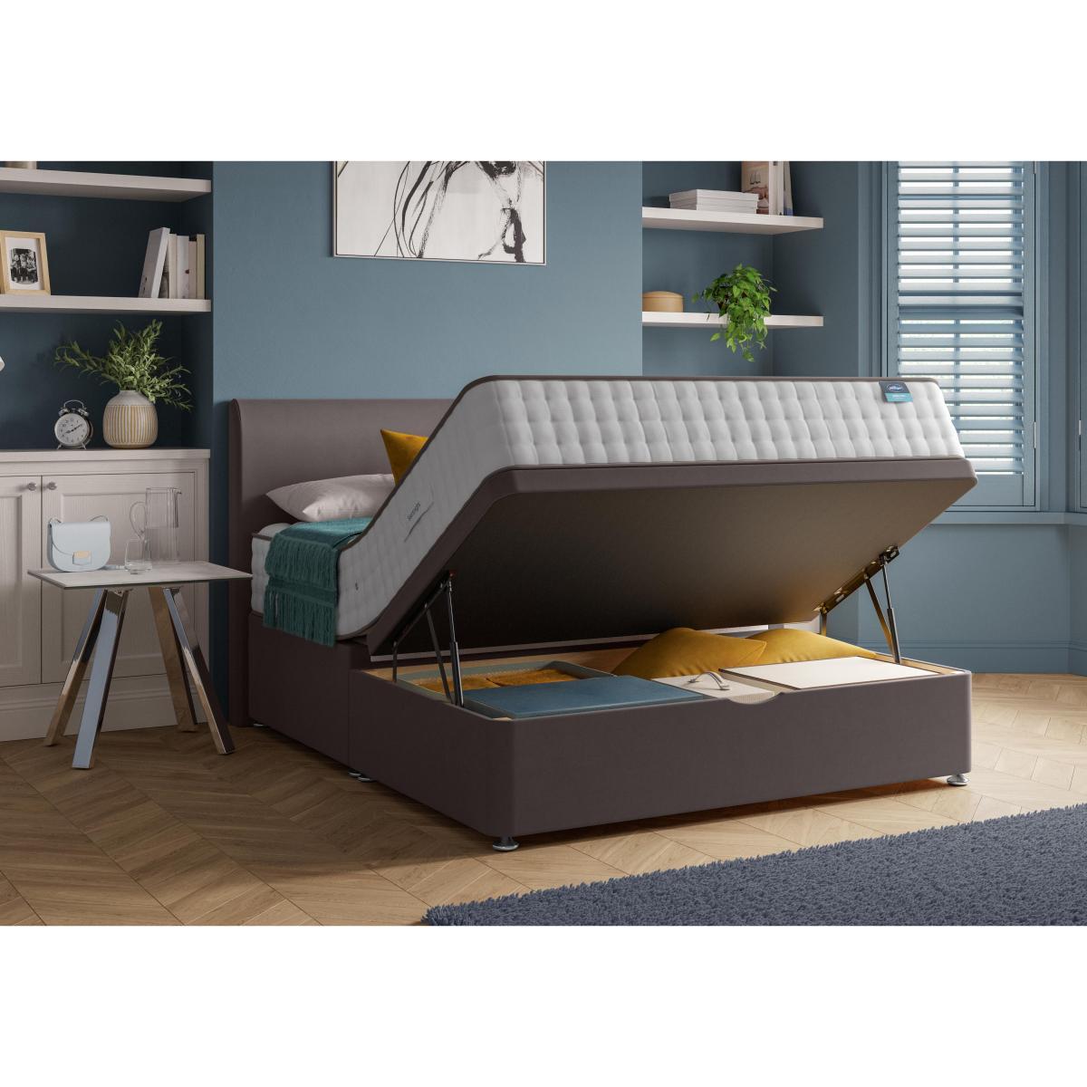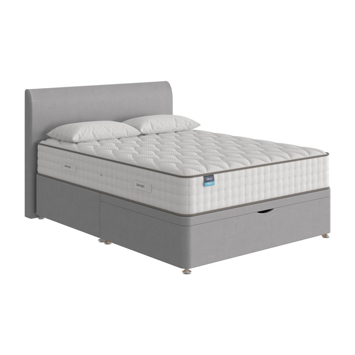 If you find a full ottoman too much, this half ottoman divan set could be the perfect choice. The mattress has 2000 responsive pocket springs and layer of cooling Geltex. Headboard shown available separately. Why you'll love it. Supportive, cooling comfort from Silentnight. At an amazing value price. 2000 responsive pocket springs. Topped with innovative, temperature regulating Geltex. Geltex draws heat from your body as you sleep. So you stay fresh and cool all night long. A ventilated border promotes airflow. Easy care, non-turn mattress. You only need to rotate it occasionally. Luxury fabric upholstered divan base in a wide choice of colours. Easy to access half ottoman divan storage, plus two drawers. UK made. A Furniture Village exclusive. What you need to know. Mattress type: Pocket springs with Geltex. Depth: 31cm. Firmness: Medium feel. Springs: 2000 pocket springs. Pillow Top: No. Fillings: Pocket springs topped with temperature regulating Geltex. Borders:Ventilated.li>. Edge to edge support: Yes. Cover: Knitted. Requires turning: No. Sizes: Single, double, king, super king. Type of base: Platform top. Storage: half ottoman, two storage drawers. Double, king and super king divan bases are delivered in two pieces for ease of delivery. Mattress care: Please allow mattress to fully recover before use. It may have a faint odour which will dissipate after airing for 4 hours. Due to the pressure relieving properties of the material it may take some time before you become accustomed to the level of comfort and support. Rotate regularly to minimise settling. We recommend the use of a mattress protector.