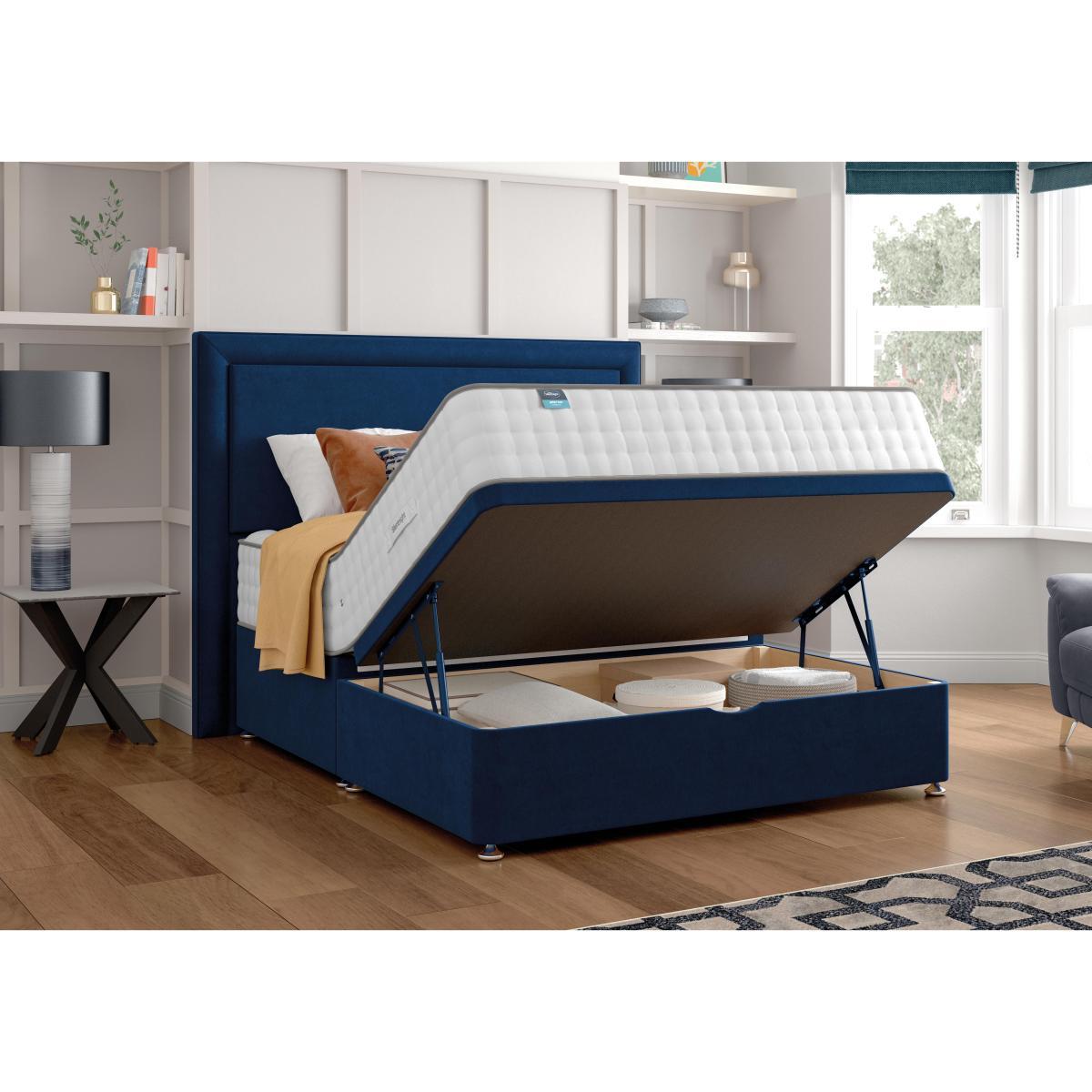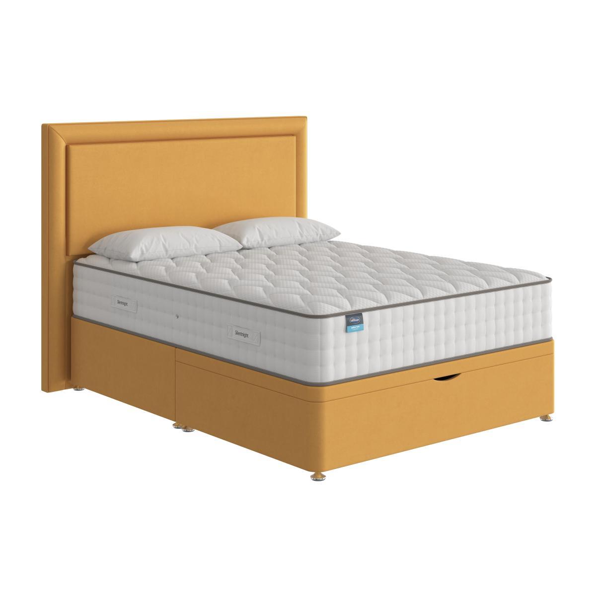 This half ottoman divan set has easy to access ottoman and drawer storage, plus a super-comfy 3000 spring mattress with a generous layer of cooling Geltex. Headboard shown available separately. Why you'll love it. Supportive, cooling comfort from Silentnight. At an amazing value price. 3000 responsive pocket springs. Topped with innovative, temperature regulating Geltex. Geltex draws heat from your body as you sleep. So you stay fresh and cool all night long. A ventilated border promotes airflow. Easy care, non-turn mattress. You only need to rotate it occasionally. Luxury fabric upholstered divan base in a wide choice of colours. Easy to access half ottoman divan storage, plus two drawers. UK made. A Furniture Village exclusive. What you need to know. Mattress type: Pocket springs with Geltex. Depth: 37cm. Firmness: Soft feel. Springs: 3000 pocket springs. Pillow Top: No. Fillings: Pocket springs topped with temperature regulating Geltex. Borders:Ventilated.li>. Edge to edge support: Yes. Cover: Knitted. Requires turning: No. Sizes: Single, double, king, super king. Type of base: Platform top. Storage: half ottoman, two storage drawers. Double, king and super king divan bases are delivered in two pieces for ease of delivery. Mattress care: Please allow mattress to fully recover before use. It may have a faint odour which will dissipate after airing for 4 hours. Due to the pressure relieving properties of the material it may take some time before you become accustomed to the level of comfort and support. Rotate regularly to minimise settling. We recommend the use of a mattress protector.
