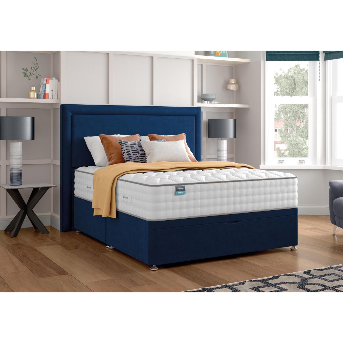 This half ottoman divan set has easy to access ottoman and drawer storage, plus a super-comfy 3000 spring mattress with a generous layer of cooling Geltex. Headboard shown available separately. Why you'll love it. Supportive, cooling comfort from Silentnight. At an amazing value price. 3000 responsive pocket springs. Topped with innovative, temperature regulating Geltex. Geltex draws heat from your body as you sleep. So you stay fresh and cool all night long. A ventilated border promotes airflow. Easy care, non-turn mattress. You only need to rotate it occasionally. Luxury fabric upholstered divan base in a wide choice of colours. Easy to access half ottoman divan storage, plus two drawers. UK made. A Furniture Village exclusive. What you need to know. Mattress type: Pocket springs with Geltex. Depth: 37cm. Firmness: Soft feel. Springs: 3000 pocket springs. Pillow Top: No. Fillings: Pocket springs topped with temperature regulating Geltex. Borders:Ventilated.li>. Edge to edge support: Yes. Cover: Knitted. Requires turning: No. Sizes: Single, double, king, super king. Type of base: Platform top. Storage: half ottoman, two storage drawers. Double, king and super king divan bases are delivered in two pieces for ease of delivery. Mattress care: Please allow mattress to fully recover before use. It may have a faint odour which will dissipate after airing for 4 hours. Due to the pressure relieving properties of the material it may take some time before you become accustomed to the level of comfort and support. Rotate regularly to minimise settling. We recommend the use of a mattress protector.