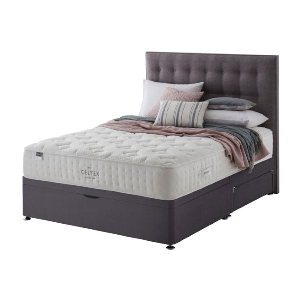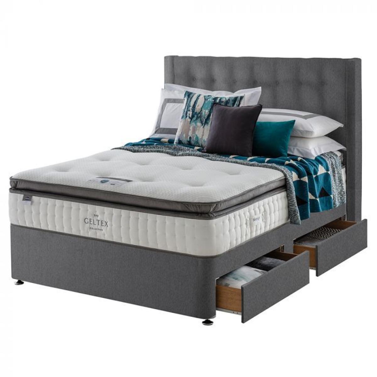Discover the unique bounce back and breathability of Geltex inside. Actively responding to your body as you sleep, so you wake up felling energised and ready for the day. Geltex is also an extra breathable mattress helping to create a cooler sleeping environment with a breathable open cell structure to let air pass through the mattress to prevent overheating. The single layer of 1000 pocket springs respond independently to weight and delivers individual tailored support to create the perfect comfort for you. Plus the mattress’s medium to soft firmness makes it an ideal choice for those who prefer to sleep on their side or front. The unique miracoil springs offers outstanding support, superior spinal alignment and maximised sleeping space. They also work to reduce "roll together" for less partner disturbance and zoned support where you need it most. All Silentnight Geltex Mattress' are treated with Purotex a 100% natural probiotic that combats allergens and dust-mites, creating a cleaner, fresher and more hygenic sleeping environment. Make the most of the under bed storage space with this Platform Top 2 Drawer Divan base. Please note the image is for demonstration purposes only, the product pictured is the Half Ottoman + 2 Drawer Combination. Please also note the headboard is not included and is available to purchase separately.