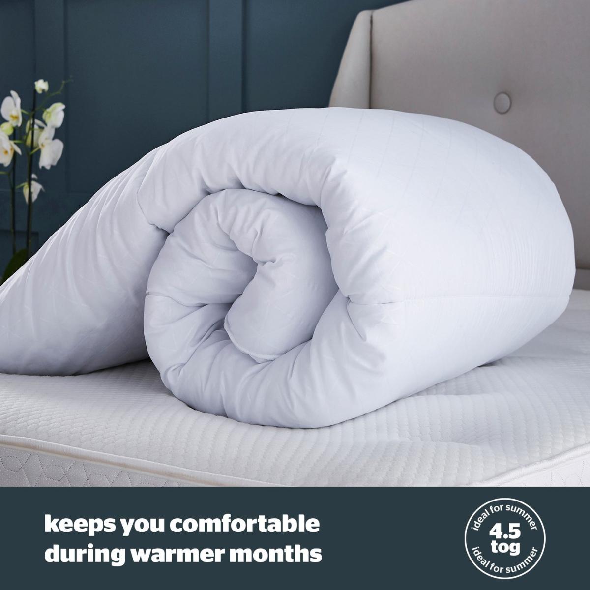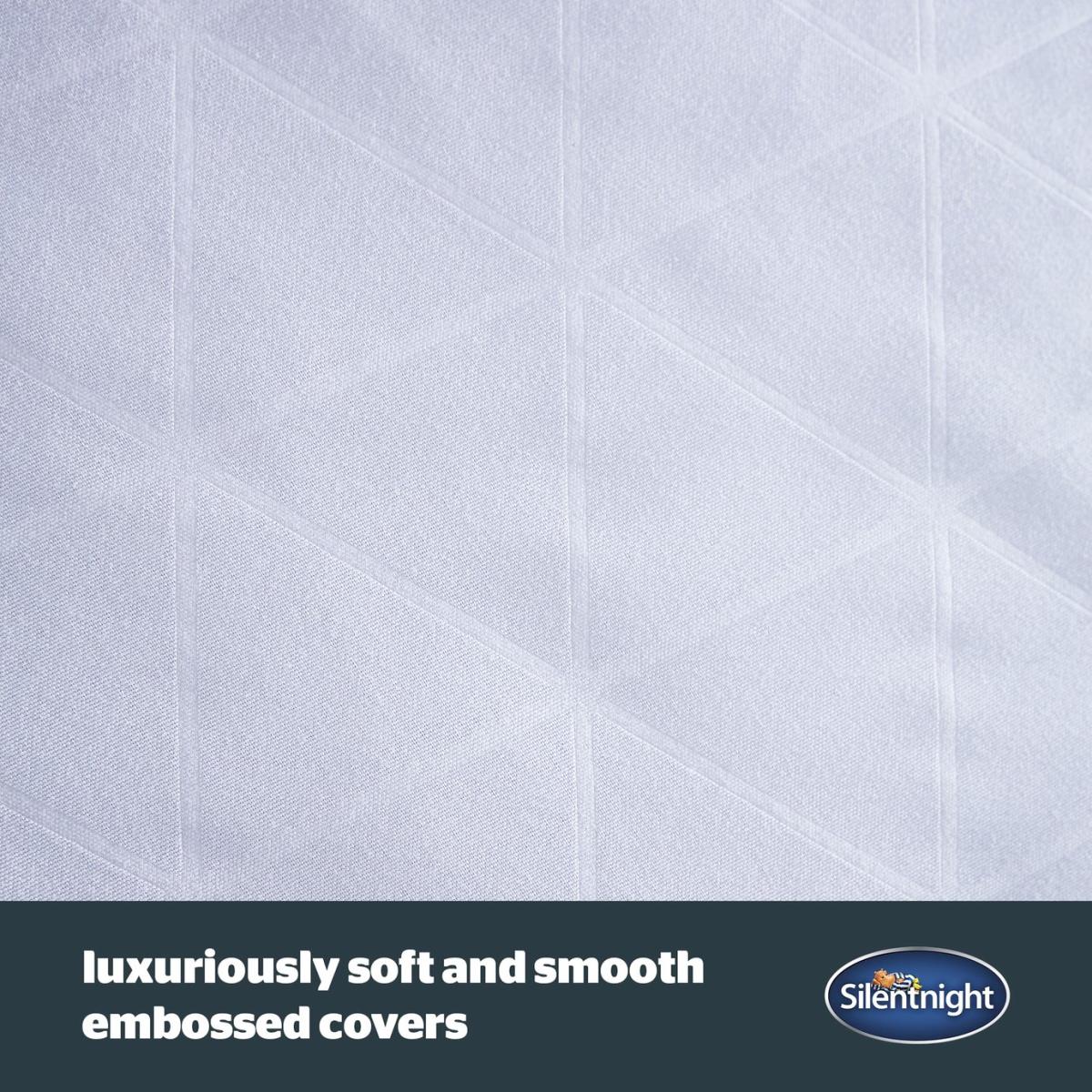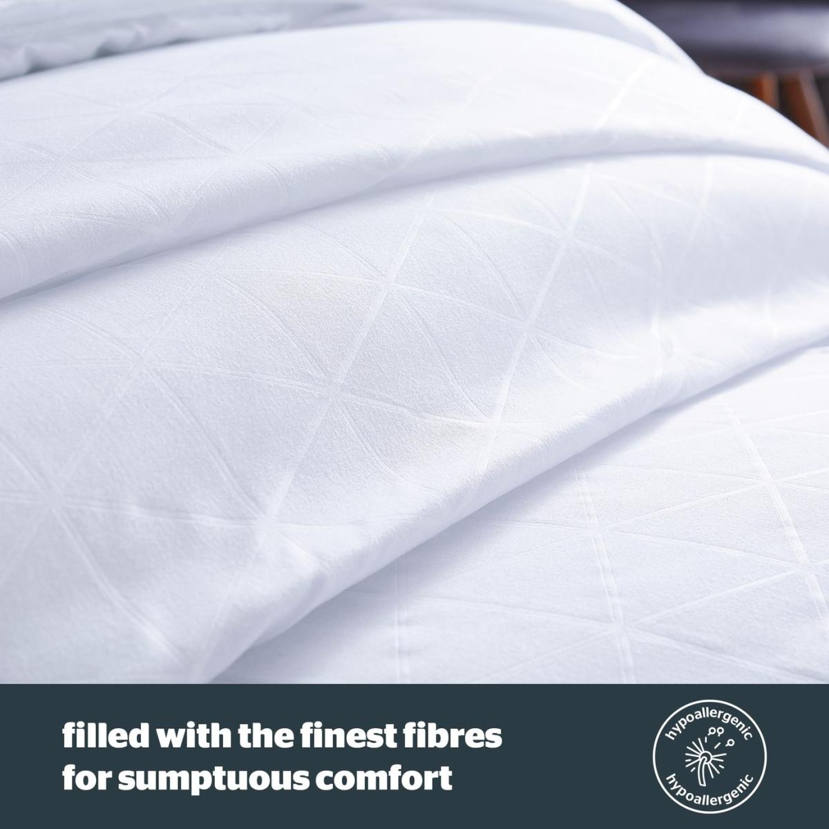 Indulge in the 5 star comfort of a hotel every night with this luxuriously soft and silky boutique style duvet, featuring an elegant embossed finish. The Silentnight Hotel Collection Duvet is encased in a wonderfully stylish and incredibly soft embossed cover and filled with the finest sumptuous fibres for luxurious comfort. The duvet is hypoallergenic which means it is kind to skin and does not include any contents likely to cause allergies. You can keep enjoying hotel quality night after night as it's are fully machine washable. Double duvet. 4.5 tog duvet. Cover made from 100% polyester. Filling made from 100% polyester. Size L200, W200cm. Machine washable at 40 C. Suitable for tumble drying. Non-allergenic. Manufacturer's 5 year guarantee.