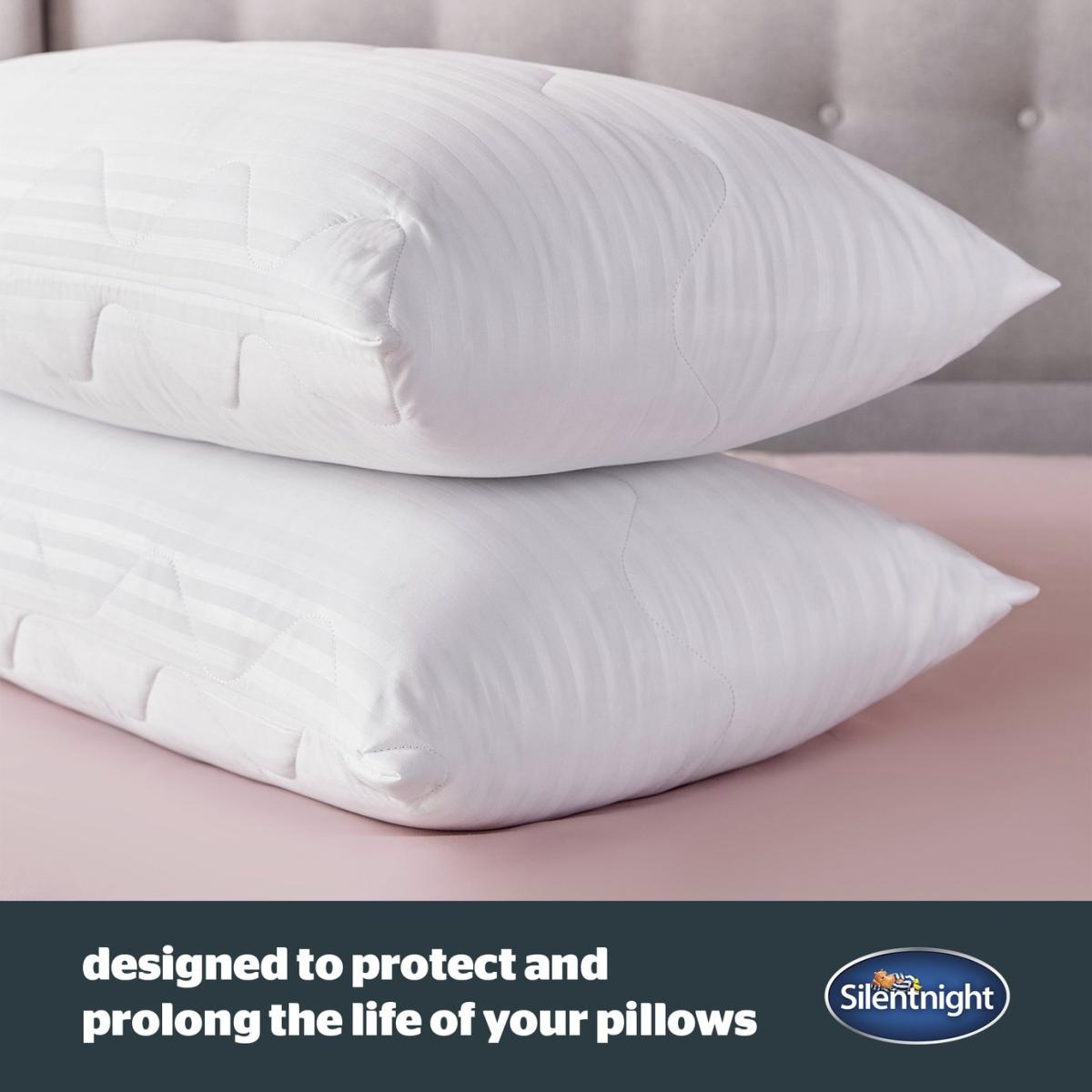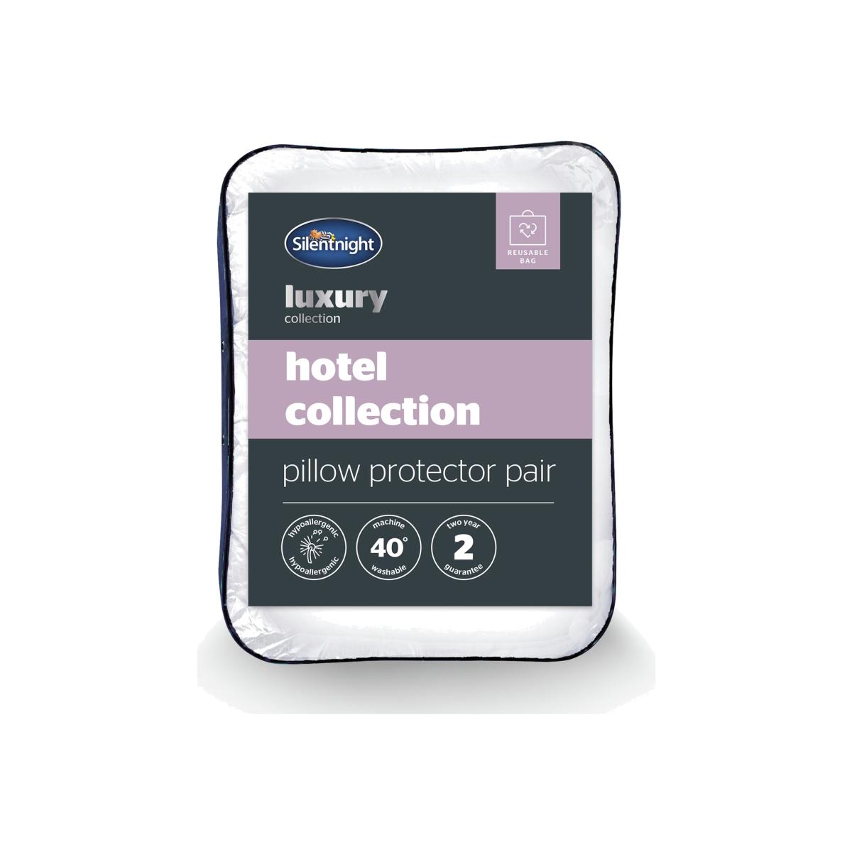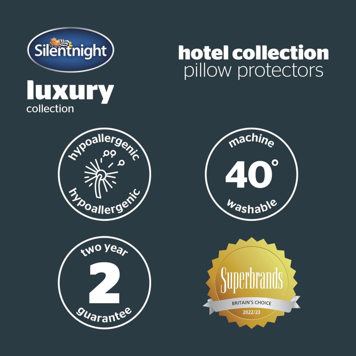 Indulge in the 5 star comfort of a hotel every night with luxuriously soft and silky boutique style pillows protectors, featuring an elegant embossed finish. The Silentnight Hotel Collection Pillow Protectors protect and prolong the life of your pillows by shielding them from spills and general wear and tear. They are hypoallergenic which means they are kind to skin and do not include any contents likely to cause allergies. You can keep enjoying hotel quality night after night as they are fully machine washable. The Silentnight Hotel Collection Pillow Protectors protect and prolong the life of your pillows by shielding them from spills and general wear and tear. 100% polyester. 100% polyester hollowfibre filling. Size L46, W75cm. Machine washable at 40 C. Line dry. Suitable for tumble drying.