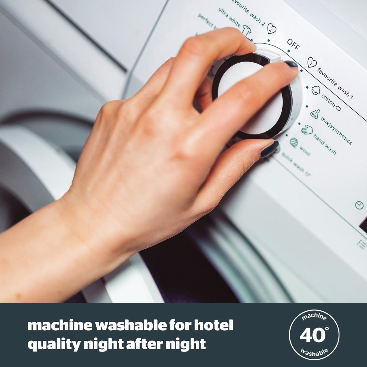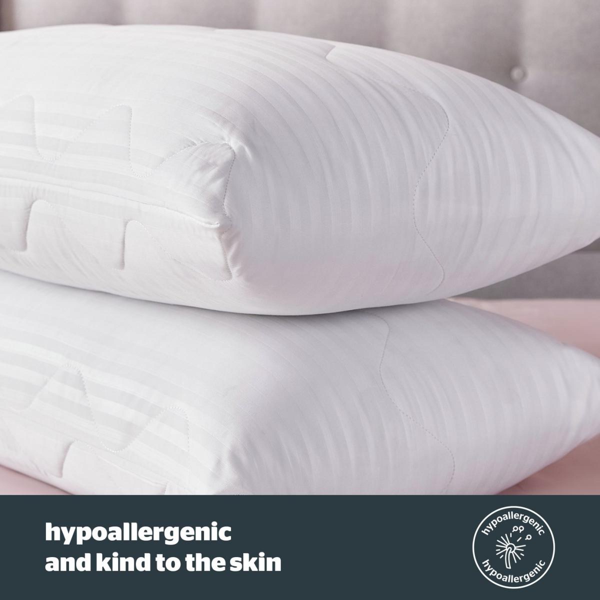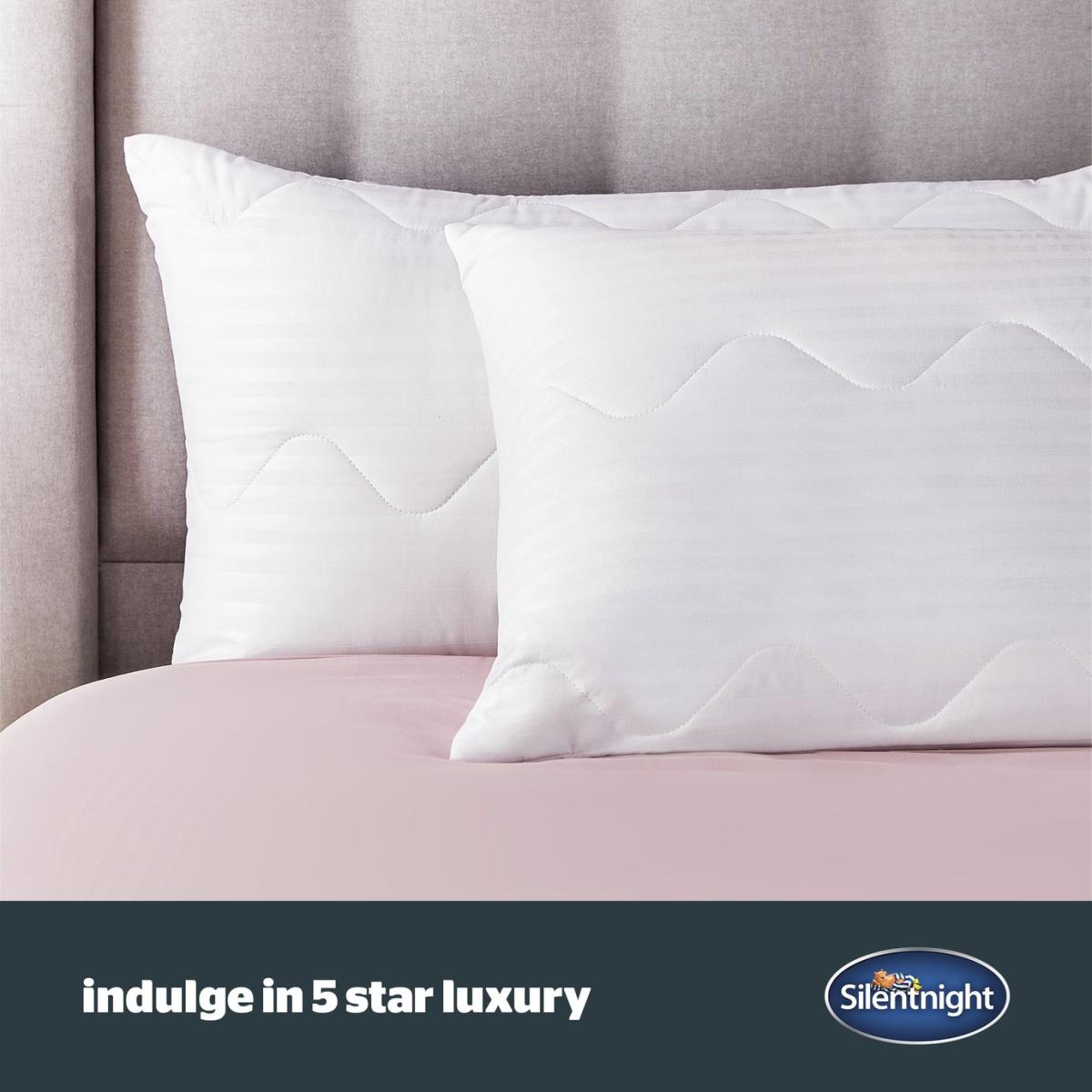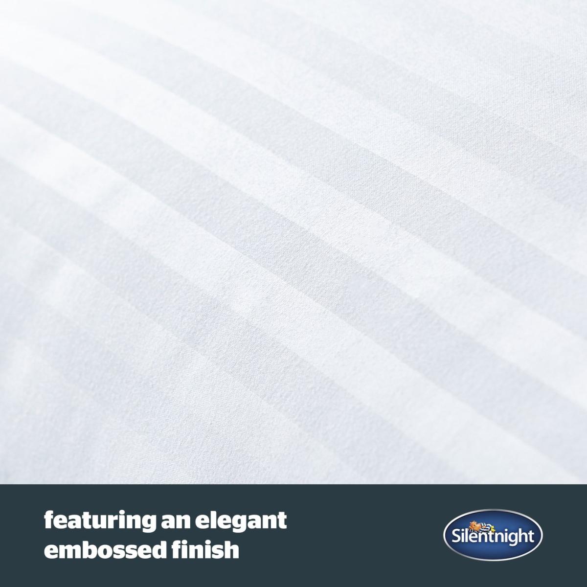 Indulge in the 5 star comfort of a hotel every night with luxuriously soft and silky boutique style pillows protectors, featuring an elegant embossed finish. The Silentnight Hotel Collection Pillow Protectors protect and prolong the life of your pillows by shielding them from spills and general wear and tear. They are hypoallergenic which means they are kind to skin and do not include any contents likely to cause allergies. You can keep enjoying hotel quality night after night as they are fully machine washable. The Silentnight Hotel Collection Pillow Protectors protect and prolong the life of your pillows by shielding them from spills and general wear and tear. 100% polyester. 100% polyester hollowfibre filling. Size L46, W75cm. Machine washable at 40 C. Line dry. Suitable for tumble drying.