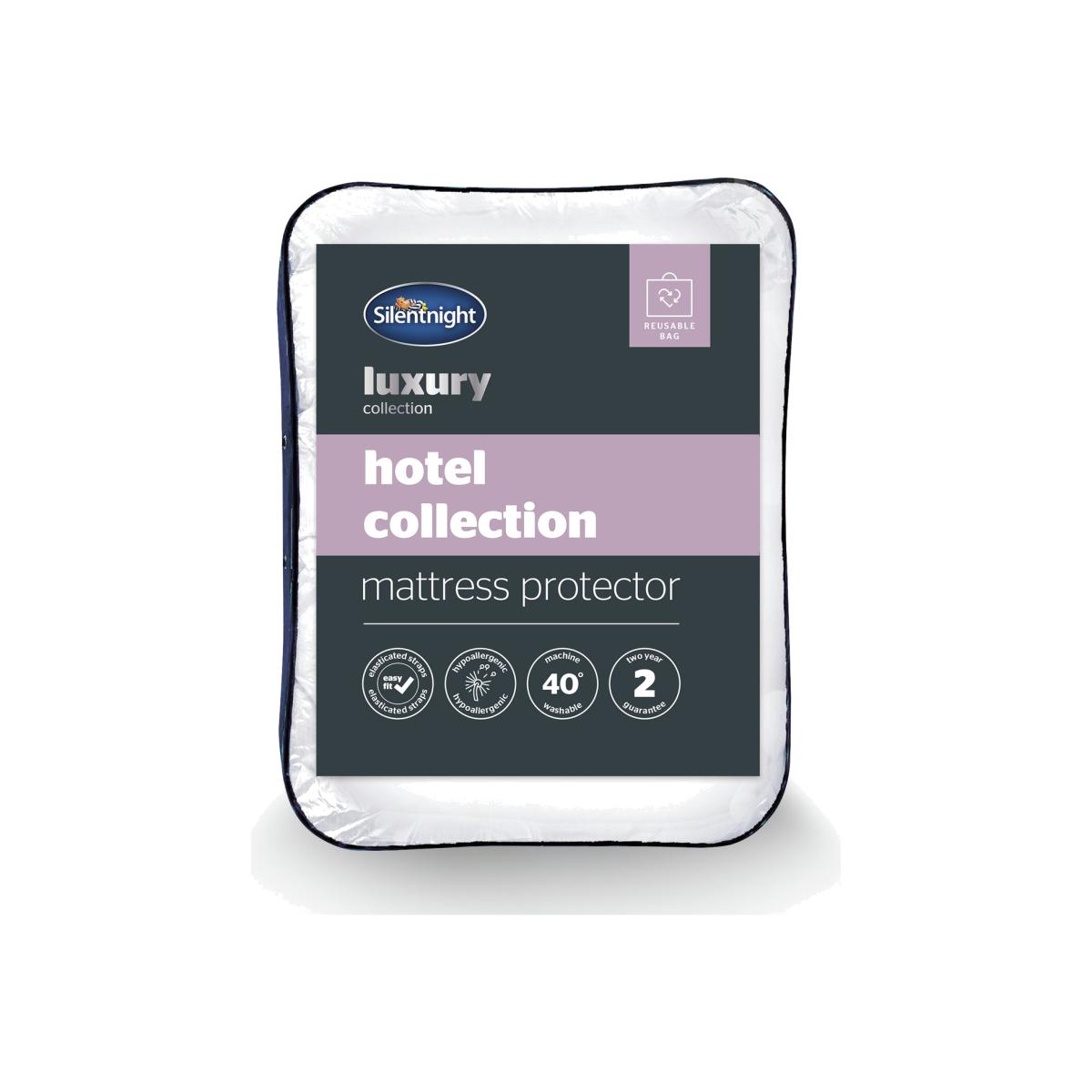 Indulge in the 5 star comfort of a hotel every night with the luxuriously soft and silky boutique style mattress protector, featuring an elegant embossed finish. The Silentnight Hotel Collection Mattress Protector protect and prolong the life of your mattress by shielding it from spills and general wear and tear. It is hypoallergenic which means it is kind to skin and does not include any contents likely to cause allergies. You can keep enjoying hotel quality night after night as it is fully machine washable. Indulge in the 5 star comfort of a hotel every night with the luxuriously soft and silky boutique style mattress protector, featuring an elegant embossed finish. Suitable for king size beds. Non-allergenic. 100% polyester cover. 100% polyester hollowfibre filling. Secured by elasticated corner tapes. Size L202, W152cm. Machine washable at 40 C. Line dry. Suitable for tumble drying.