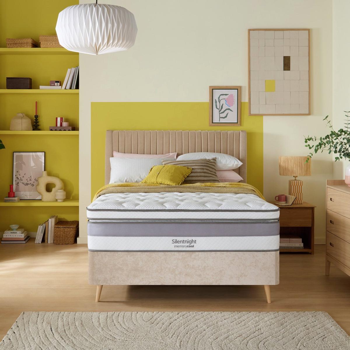 Benefit from cooler sleep and memory's signature sink in comfort with Silentnight's, Memory Cool 3000. Like Memory foam, Memory Cool gently wraps around you, relieving pressure on muscles and joints, while graphite-infused particles absorb and dissipate heat, creating a sleep environment 15% cooler than standard foam. A dual-layer of 2000 Mirapocket springs provide zoned support and improved spinal alignment. The extra plush boxtop with 1000 mini springs and a breathable mesh border, adds luxurious depth and breathability all night long. Our advanced graphite infused Memory Cool, moulds perfectly to your body, relieving pressure, and absorbing energy, all while actively transferring heat away to create a sleep environment 15% cooler than standard memory foam for a more restful night's sleep. The sink in nature of Memory Cool prevents excessive movement during sleep and reduces roll together, minimising partner disturbance and providing undisturbed sleep night after night. The unique zoned spring system of the 2000 Mirapocket springs keeps you comfy, supported, and uninterrupted, all night. Combined with a layer of 1000 mini springs in the Box Top for support where you need it most. The parallel spring design provides support all the way to the edge. So, you can both enjoy a spacious, undisturbed sleep. Soft feel. Pocket sprung with memory foam layer mattress with 3000 springs. Knit cover with deep quilt finish. No roll together. Mattress size W120, L190, D36.5cm. Mattress Weight 42kg. No-turn mattress. Rotate mattress regularly. Made in the UK. Package Dimensions: Package 1 dimensions: H190, W120, D36.5cm. General information: By choosing FSC certified products, you are supporting responsible management of the world's forests. Manufacturer's 5 year guarantee.
