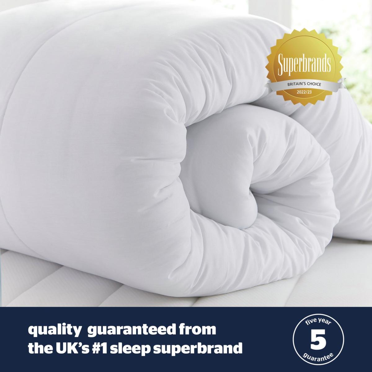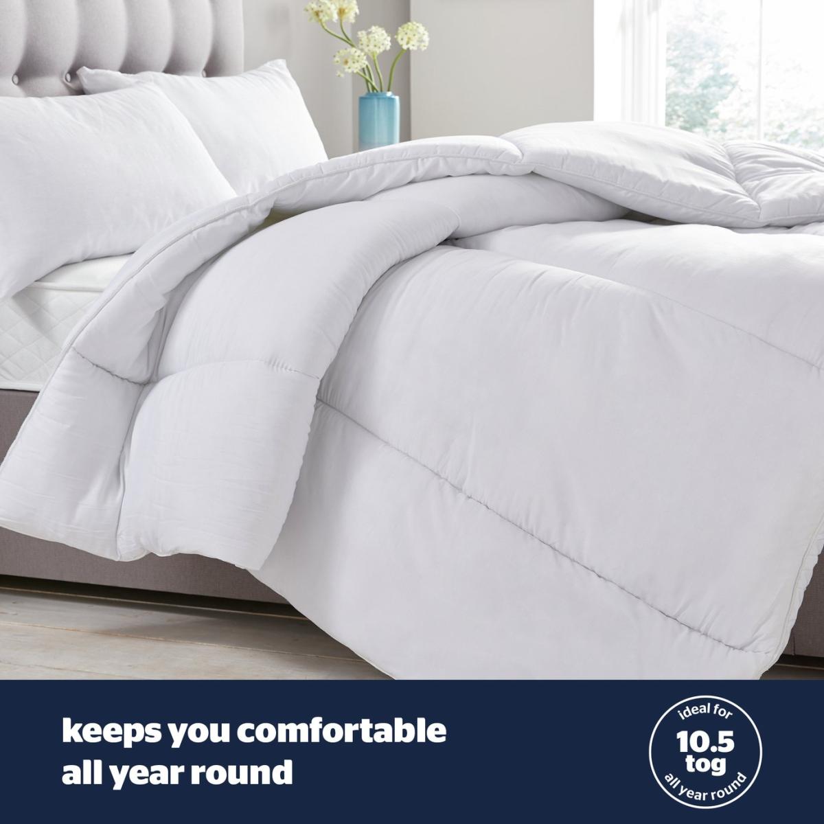 Sink into a better night's sleep with the Middleton Collection Classic Comfort Duvet. The ultra cosy and generously filled duvet provides classic comfort to turn your bed into a blissful sanctuary. Cased in a smooth cover, the duvet feels soft on the skin, helping you sleep better night after night. This product comes with a 5 year manufacturer's guarantee and is hypoallergenic which means it is kind to skin and does not include any contents likely to cause allergies. Silentnight are the UK's most trusted sleep brand with over 75 years' experience in creating products that offer solutions for every sleeper. King size duvet. 10.5 tog duvet. Cover made from 100% polyester. Filling made from 100% hollowfibre polyester. Size L220, W225cm. 2.26kg. Machine washable at 40 C. Suitable for washing in a standard size washing machine. Suitable for tumble drying. Non-allergenic. Manufacturer's 5 year guarantee.