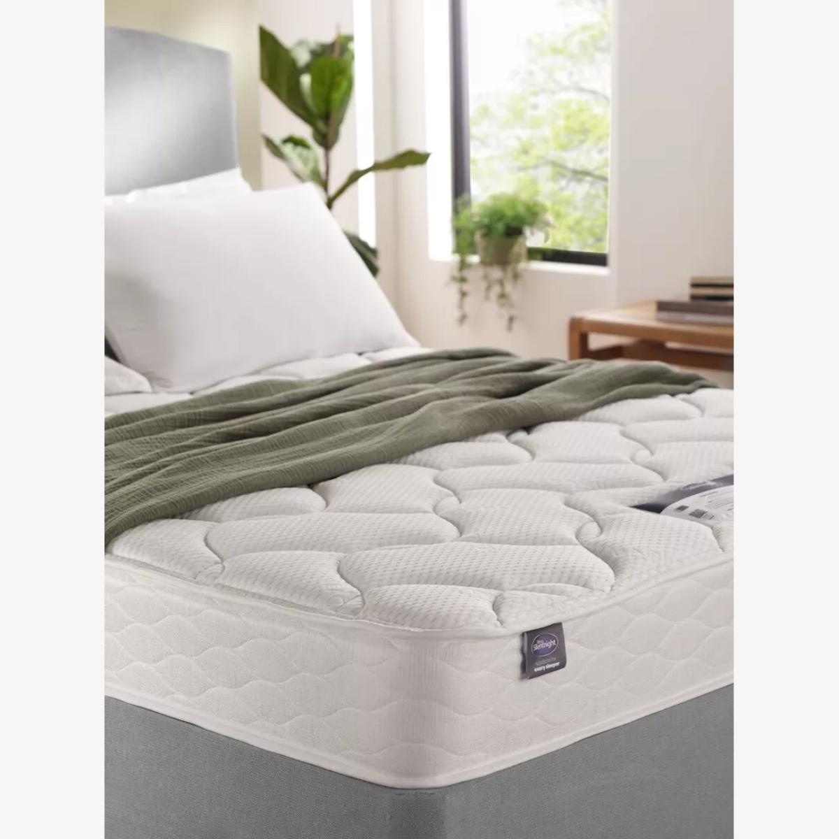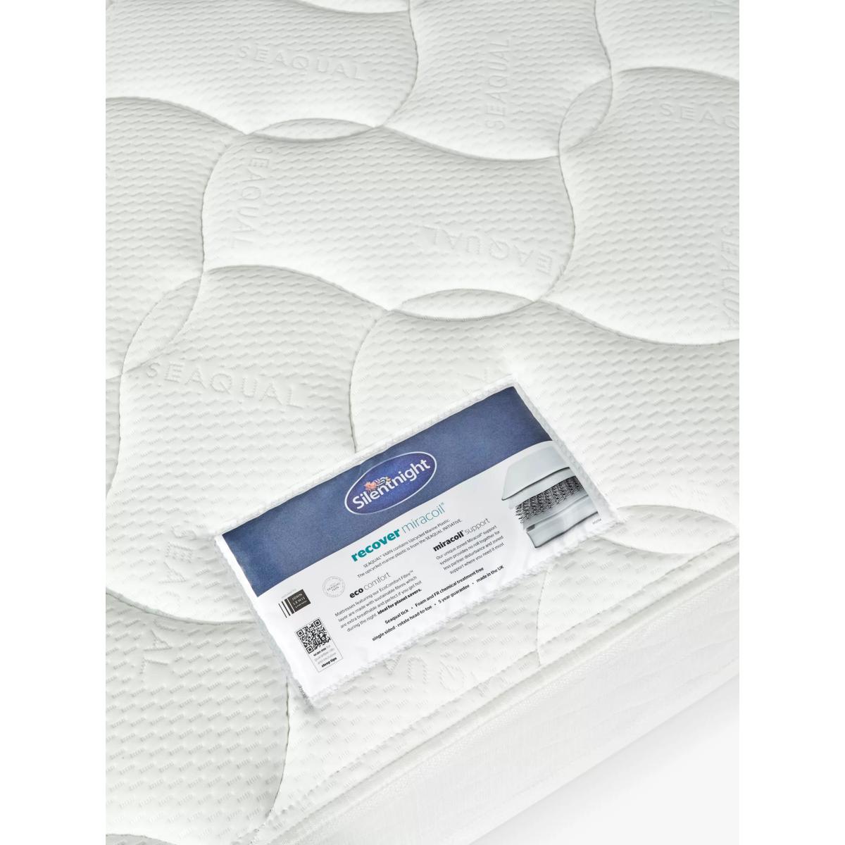 Silentnight's Collection quilted slate grey divan base comes with a regular tension Recover mattress. A headboard is not included. About the mattress: Sustainable sleep has never been easier. Silent Night's Miracoil mattress has a soft sleep surface and is made with upcycled plastics for a great night’s sleep. Open coil spring system and Eco Comfort The open coil spring system offers ample support and the familiar feeling of a traditional mattress. Made with a Miracoil® support system which provides zoned support where you need it most. Scientifically proven to improve your spinal alignment and posture, the unique spring design means your partner won’t be disturbed when you move. Eco Comfort Fibre Layer This Mattress features an Eco Comfort Fibre layer, made with sustainable fibres which are extra breathable and perfect if you get hot during the night. Eco Comfort fibres are made with recycled plastic waste including bottles. SEAQUAL™ technology Recover mattresses contain SEAQUAL™ technology which uses Upcycled Marine Plastic to make mattresses. SEAQUAL™ works with NGOs, fishermen, authorities and local communities to help clean our oceans. Marine litter from our beaches, oceans, rivers and estuaries is collected by clean-up programs. It is then sorted into different material types and the plastic portion is cleaned and transformed into Upcycled Marine Plastic, which can then be used to produce high-quality mattress textiles and covers. Try before you buy This is an important purchase and it’s worthwhile to try your choice of mattress in-store to make sure it's right for you. Our store Partners will be able to tell you more about its benefits, and recommend options based on your needs. Extend the life of your new mattress with a durable and breathable mattress protector.