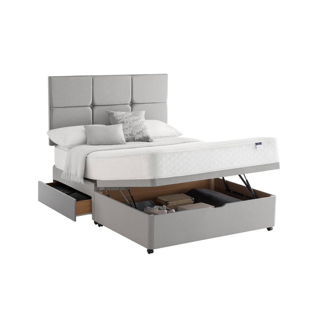 Silentnight Miracoil Serenity divan beds and mattresses have a unique zoned Miracoil spring system offering comfort and support for all shapes and sizes. Twice as many springs offer improved pressure relief with edge to edge support for maximum sleep space with no roll together, and zoned support where you need it most for perfect spine alignment. Miracoil springs have enhanced durability, providing superior comfort for longer. Headboard is an optional extra. Fantastic value spring and memory foam divan bed from Silentnight. Edge-to-edge support, more personal space, no ‘roll together’. Miracoilzoned spring system aligns your spine perfectly. Memory foam moulds to the shape of your body. Twice as many springs for improved pressure relief and comfort. Smooth anti-allergy damask for a relaxing sleep surface. Half ottoman platform top base with a choice of drawer options. Made in the UK. An Online Exclusive from Furniture Village. Please note. The mattress should be aired for four hours after delivery to freshen and remove any aroma from storage. It may take time for your mattress to attain its full size once the springs have settled to the correct position. This is due to the mattress being upright during transit. Settlement of fillings and indentations caused by body weight compressing the fillings are natural and not considered defects. This can be minimised by regular rotating (unless yours is a dual tension mattress). Product images are representative. Find out more.