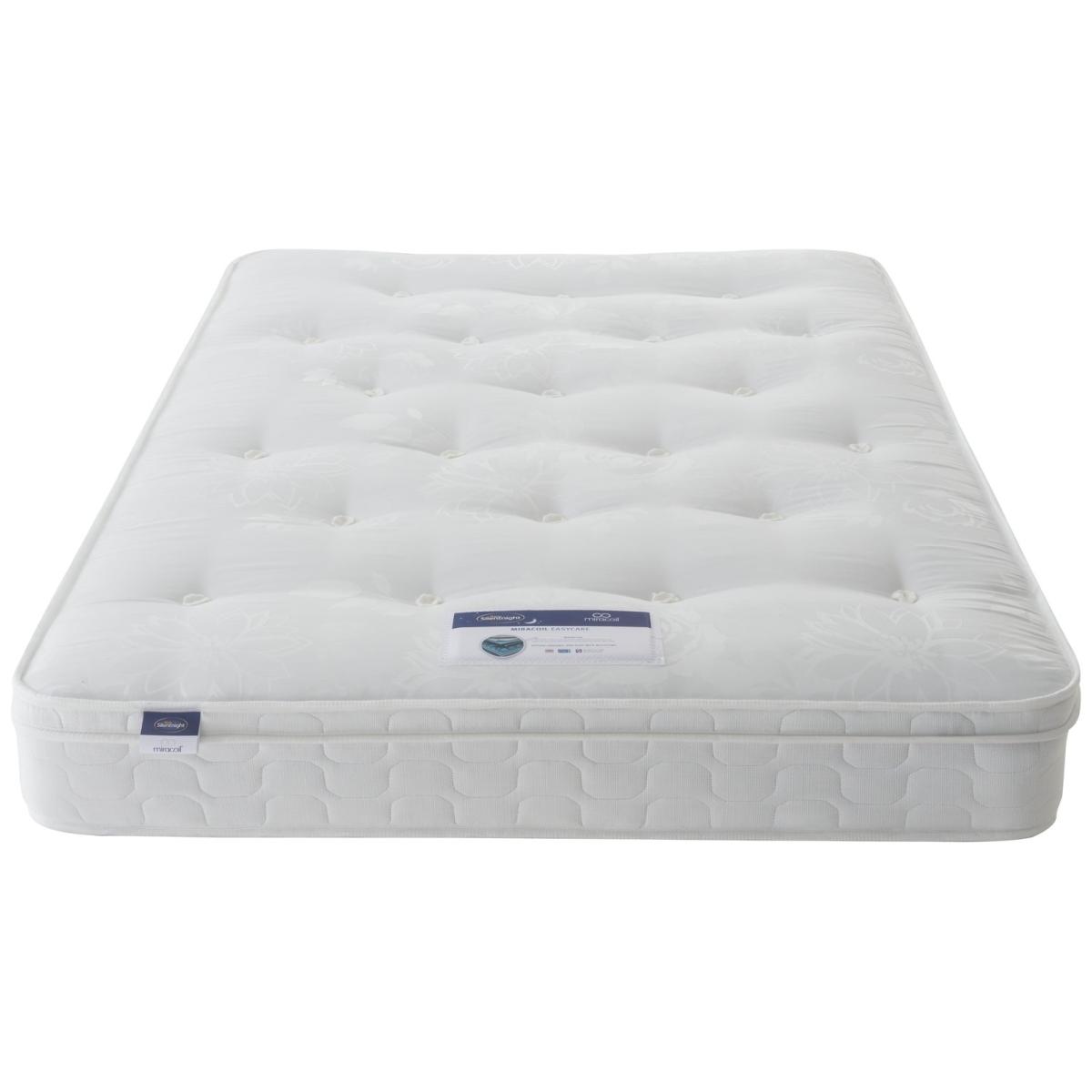 Part of the Silentnight Travis collection, this orthopaedic mattress is designed with a blend of Eco Comfort fibre fillings, a unique Miracoil spring system and traditional hand tufting to provide great back support which eases aches and pains, without compromising on comfort. With a firm feel, this spring system ensures no roll together for less partner disturbance, edge to edge support for more sleep space and zoning across the mattress which is scientifically proven to provide better spinal alignment for people of all shapes and sizes. This mattress features a layer of eco comfort fibres, chosen for additional comfort without compromising the planet - as it uses a comfort layer made from recycled plastic bottles which also allow airflow for a more breathable environment as you sleep. It's finished in a smooth damask cover, and is hypoallergenic for healthier sleep each night. As an easy care mattress, you don't need to worry about flipping it simply rotate it head to toe regularly to ensure longevity. At Argos Home we want you to get the best night's sleep possible, so we offer a 100 night comfort promise on our mattresses. Try your new mattress for up to 100 nights and if you aren't sleeping soundly, we'll offer you an exchange for one that suits you better. Part of the Travis collection. Firm feel. Continuous sprung mattress with 782 springs. Damask cover with tufted finish. No roll together. Anti allergy. Mattress size W150, L200, D22cm. No-turn mattress. Rotate mattress regularly. Made in the UK. General information: Manufacturer's 5 year guarantee.