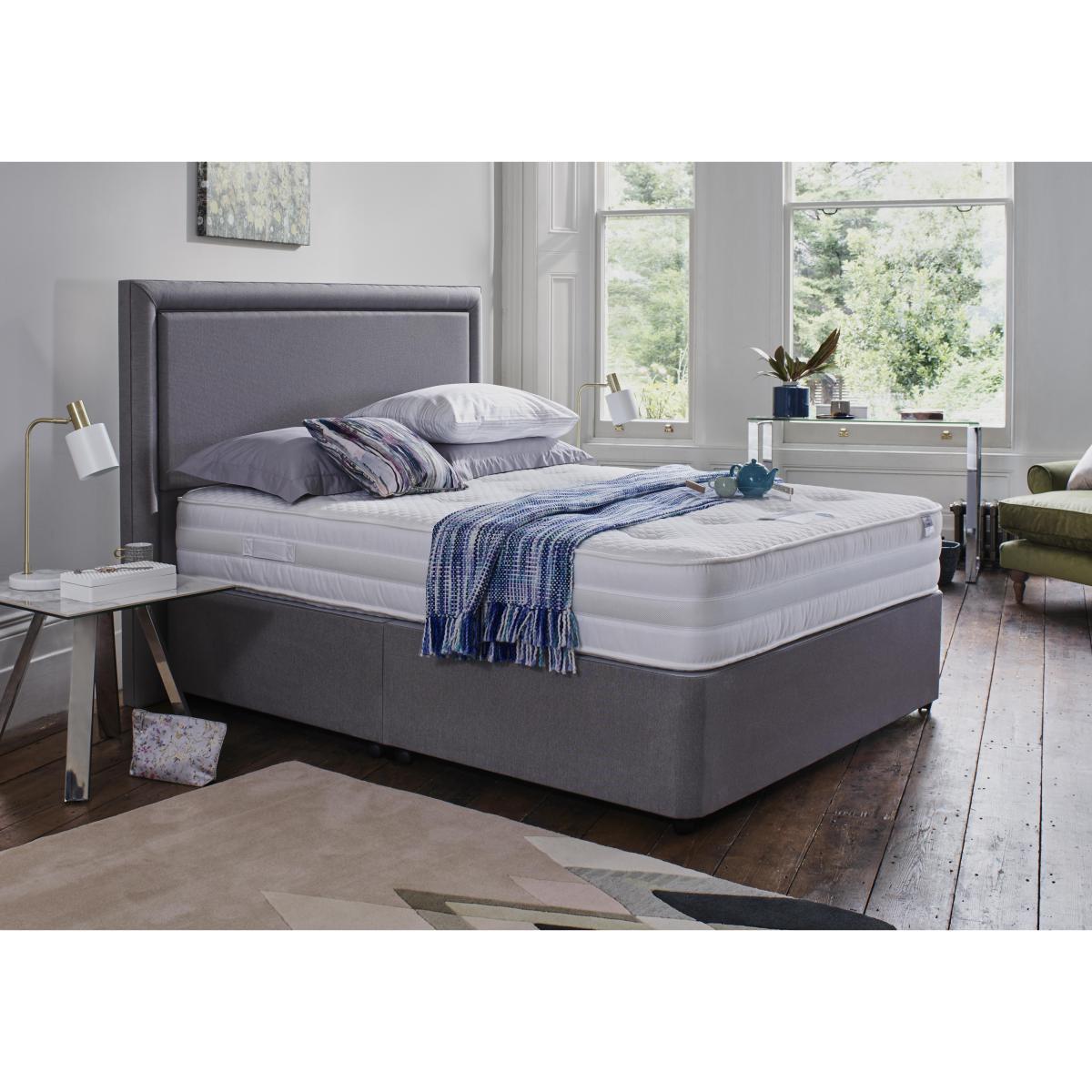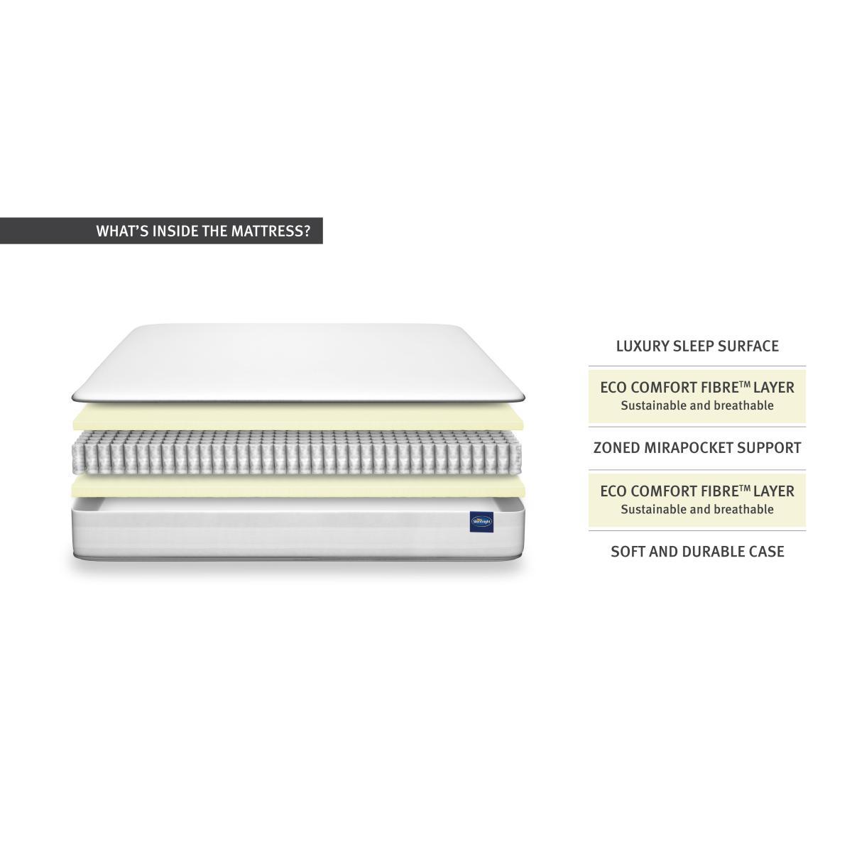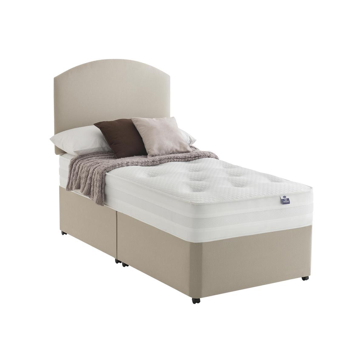 Silentnight Mirapocket Serenity divan beds and mattresses feature unique Mirapocket technology with individual springs held under tension in their own fabric pockets. Each spring responds to your body, spreading your weight evenly across the bed providing pressure relief and zoned support where you need it most and luxurious, tailored comfort. With edge to edge support, in a choice of spring counts to suit individual needs. Headboard is an optional extra. (Please note that the pictured Headboard is not available in 3ft). There’s so much to love about the Silentnight Mirapocket Serenity 1200 divan set, featuring a Which? Best Buy mattress and an upholstered platform-top divan base. The base is available in a choice of colours and has optional storage drawers. The mattress offers an incredible range of features for the price. With 1200 zoned Mirapocket pocket springs in King size, it offers responsive comfort with targeted pressure relief in three zones. Edge-to-edge support helps to minimise roll together while providing a wider and more expansive sleeping surface. Hand tufted, it has a breathable border and a Purotex-treated damask cover for a clean sleeping environment. An environmentally-friendly breathable comfort layer features Eco Comfort Fibres™, which are made from 100% recyclable plastic bottles. Made in the UK, the Silentnight Mirapocket Serenity 1200 divan set is part of the Silentnight Mirapocket Serenity 1200 range which also includes a standalone mattress. Product images are representative. Find out more. Did you know?. The mattress should be aired for four hours after delivery to freshen and remove any aroma from storage. It may take time for your mattress to attain its full size once the springs have settled to the correct position. This is due to the mattress being upright during transit. Settlement of fillings and indentations caused by body weight compressing the fillings are natural and not considered defects. This can be minimised by regular rotating (unless yours is a dual tension mattress).
