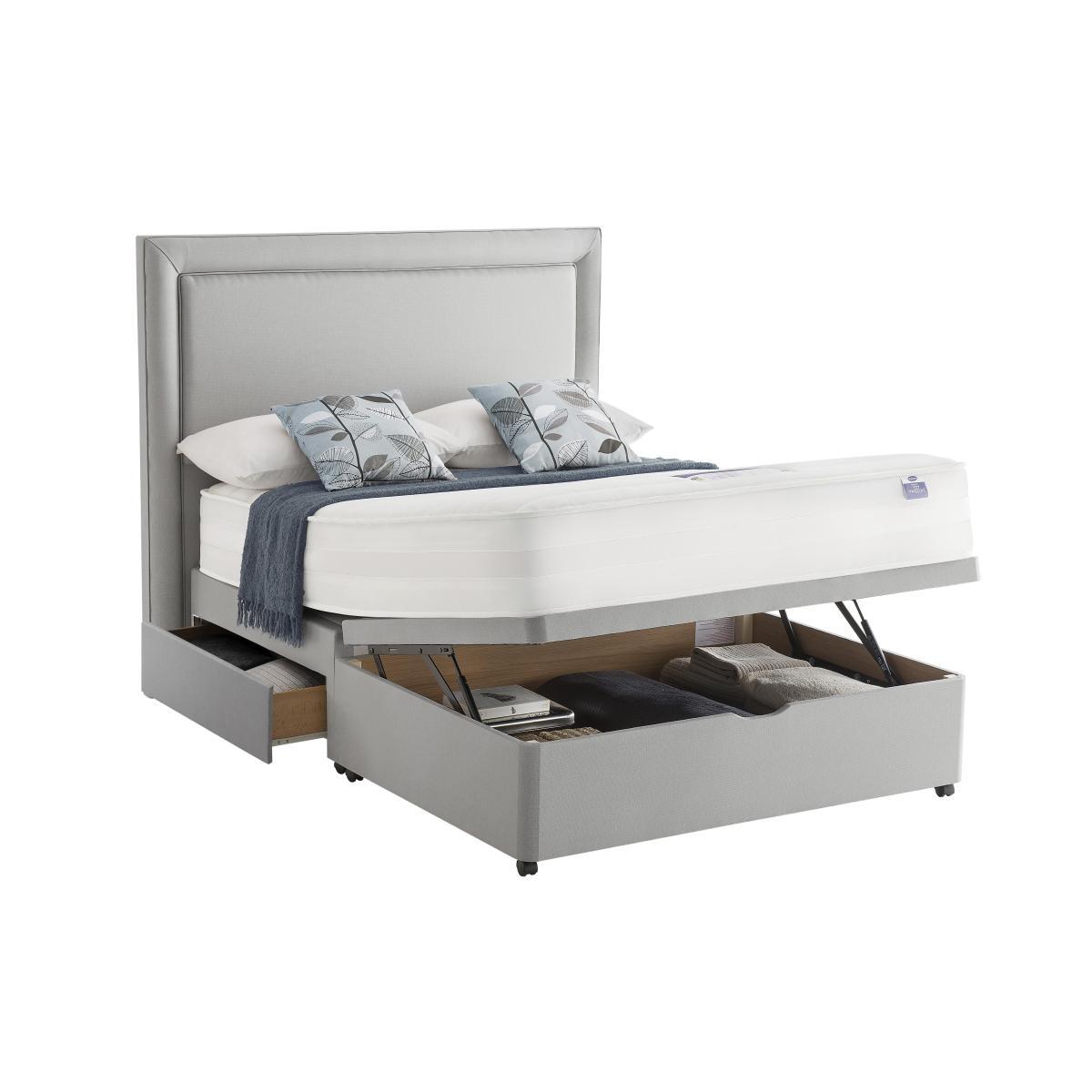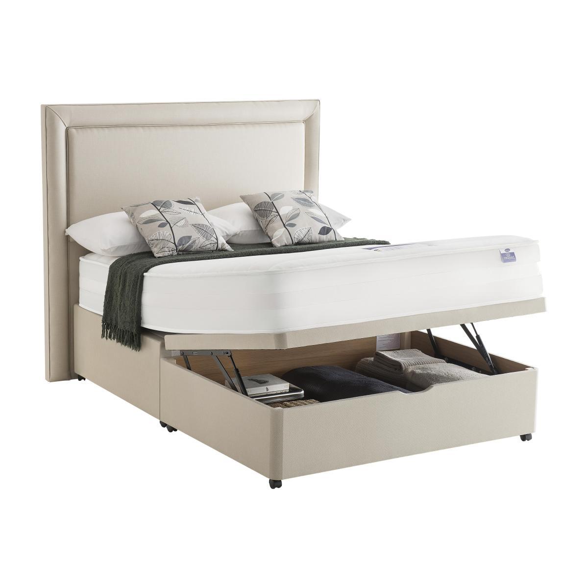 Silentnight Mirapocket Serenity divan beds and mattresses feature unique Mirapocket technology with individual springs held under tension in their own fabric pockets. Each spring responds to your body, spreading your weight evenly across the bed providing pressure relief and zoned support where you need it most and luxurious, tailored comfort. With edge to edge support, in a choice of spring counts to suit individual needs. Headboard is an optional extra. Fantastic value pocket spring and memory foam divan bed from Silentnight. Edge-to-edge support means more sleep space with no ‘roll together’. Mirapocket technology with 1200 zoned pocket springs. Individually responsive pocket springs allow perfect spinal alignment. A deep layer of memory foam moulds to the shape of your body. Smooth anti-allergy damask for a relaxing sleep surface. Half ottoman platform top base, with a choice of drawer options. Made in the UK. An Online Exclusive from Furniture Village. Did you know?. The mattress should be aired for four hours after delivery to freshen and remove any aroma from storage. It may take time for your mattress to attain its full size once the springs have settled to the correct position. This is due to the mattress being upright during transit. Settlement of fillings and indentations caused by body weight compressing the fillings are natural and not considered defects. This can be minimised by regular rotating (unless yours is a dual tension mattress). Product images are representative. Find out more.