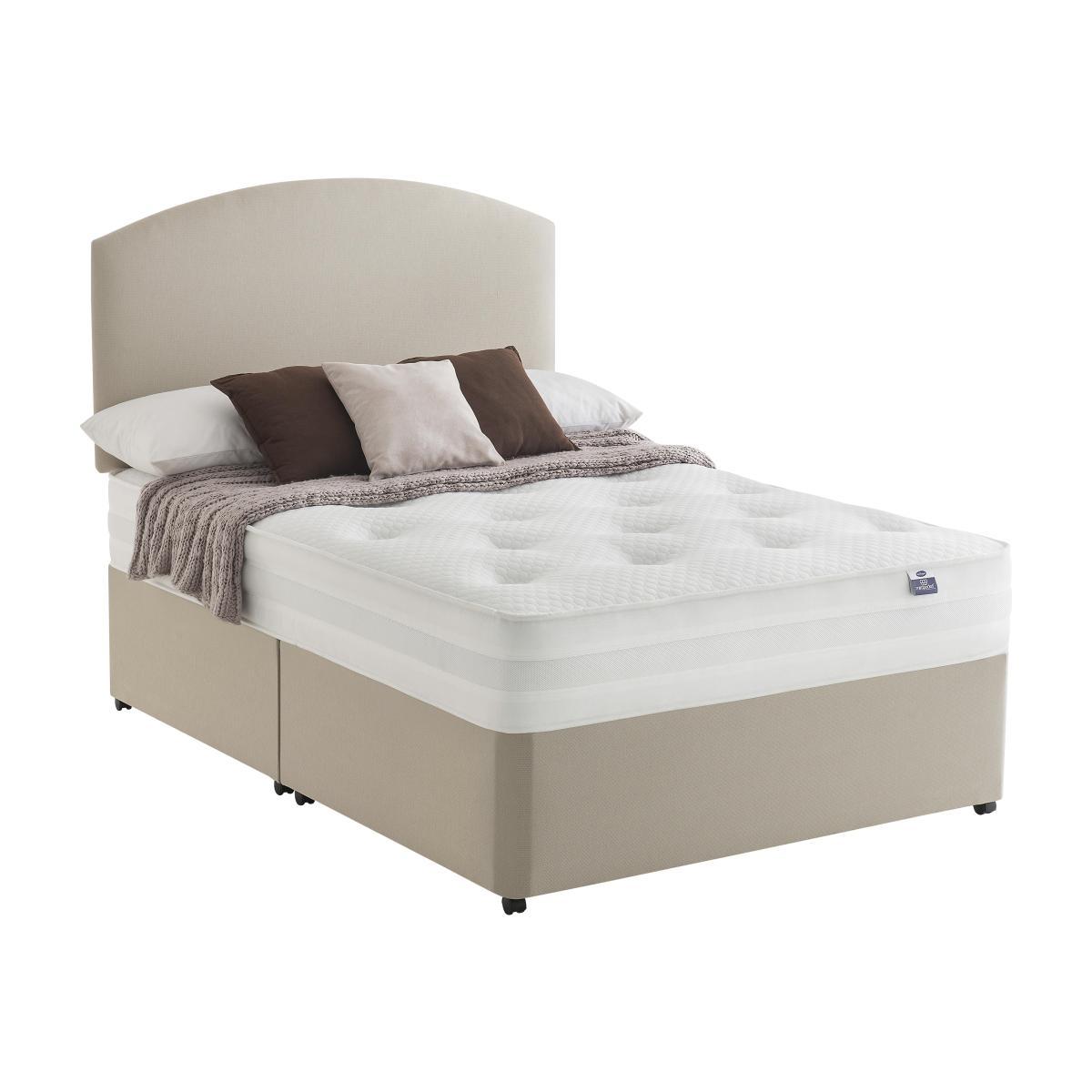 Silentnight Mirapocket Serenity divan beds and mattresses feature unique Mirapocket technology with individual springs held under tension in their own fabric pockets. Each spring responds to your body, spreading your weight evenly across the bed providing pressure relief and zoned support where you need it most and luxurious, tailored comfort. With edge to edge support, in a choice of spring counts to suit individual needs. Headboard is an optional extra. Fantastic value Silentnight Mirapocket Serenity Ortho divan bed. Edge-to-edge support means more sleep space with no ‘roll together’. Mirapocket technology with 1400 zoned pocket springs. Comfort layer has Eco Comfort Fibres™ from 100% recyclable plastic bottles. Responsive individual springs in 3 zones, in their own fabric pockets. No turn, hand-tufted mattress with breathable border. Smooth anti-allergy damask for a relaxing sleep surface. Classic platform top base, with a choice of drawer options. Made in the UK. An Online Exclusive from Furniture Village. Did you know?. The mattress should be aired for four hours after delivery to freshen and remove any aroma from storage. It may take time for your mattress to attain its full size once the springs have settled to the correct position. This is due to the mattress being upright during transit. Settlement of fillings and indentations caused by body weight compressing the fillings are natural and not considered defects. This can be minimised by regular rotating (unless yours is a dual tension mattress).Product images are representative. Find out more.