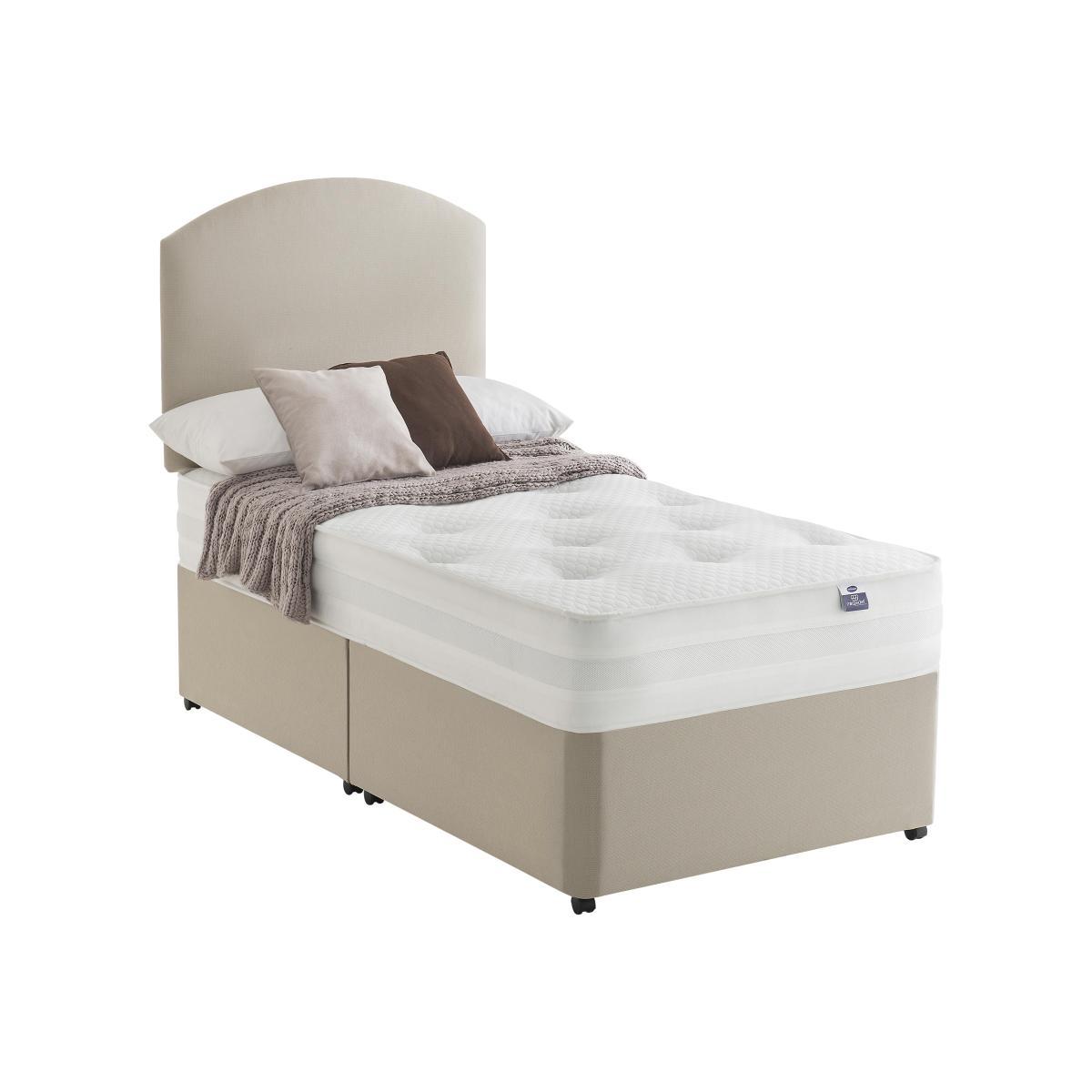 Silentnight Mirapocket Serenity divan beds and mattresses feature unique Mirapocket technology with individual springs held under tension in their own fabric pockets. Each spring responds to your body, spreading your weight evenly across the bed providing pressure relief and zoned support where you need it most and luxurious, tailored comfort. With edge to edge support, in a choice of spring counts to suit individual needs. Headboard is an optional extra. Fantastic value Silentnight Mirapocket Serenity Ortho divan bed. Edge-to-edge support means more sleep space with no ‘roll together’. Mirapocket technology with 1400 zoned pocket springs. Comfort layer has Eco Comfort Fibres™ from 100% recyclable plastic bottles. Responsive individual springs in 3 zones, in their own fabric pockets. No turn, hand-tufted mattress with breathable border. Smooth anti-allergy damask for a relaxing sleep surface. Classic platform top base, with a choice of drawer options. Made in the UK. An Online Exclusive from Furniture Village. Did you know?. The mattress should be aired for four hours after delivery to freshen and remove any aroma from storage. It may take time for your mattress to attain its full size once the springs have settled to the correct position. This is due to the mattress being upright during transit. Settlement of fillings and indentations caused by body weight compressing the fillings are natural and not considered defects. This can be minimised by regular rotating (unless yours is a dual tension mattress).Product images are representative. Find out more.