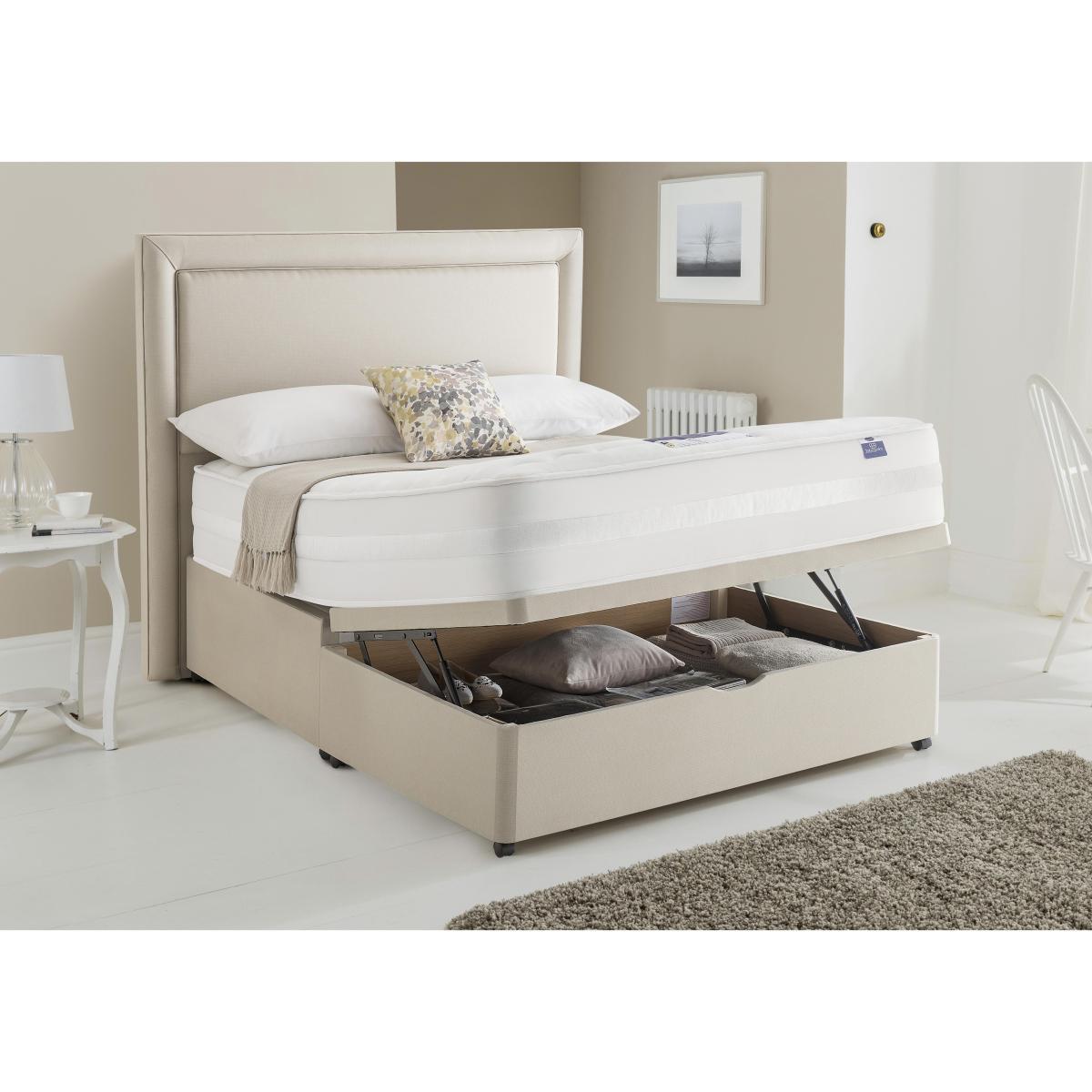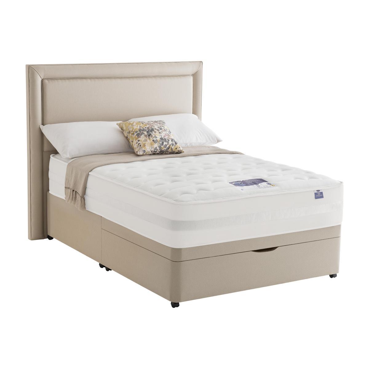 Silentnight Mirapocket Serenity divan beds and mattresses feature unique Mirapocket technology with individual springs held under tension in their own fabric pockets. Each spring responds to your body, spreading your weight evenly across the bed providing pressure relief and zoned support where you need it most and luxurious, tailored comfort. With edge to edge support, in a choice of spring counts to suit individual needs. Headboard is an optional extra. Fantastic value pocket spring and memory foam divan bed from Silentnight. Edge-to-edge support means more sleep space with no ‘roll together’. Mirapocket technology with 2000 zoned pocket springs. Individually responsive pocket springs allow perfect spinal alignment. A deep layer of memory foam moulds to the shape of your body. Smooth anti-allergy damask for a relaxing sleep surface. Half ottoman platform top base, with a choice of drawer options. Made in the UK. Did you know?. The mattress should be aired for four hours after delivery to freshen and remove any aroma from storage. It may take time for your mattress to attain its full size once the springs have settled to the correct position. This is due to the mattress being upright during transit. Settlement of fillings and indentations caused by body weight compressing the fillings are natural and not considered defects. This can be minimised by regular rotating (unless yours is a dual tension mattress). Product images are representative. Find out more.