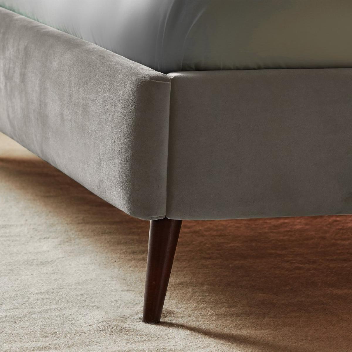 The Oriana Upholstered bed frame is designed to add a touch of glamour to any space, with a fan-shaped headboard & sumptuous finish, this trend-led bedframe will set the tone for the rest of your room. Handcrafted here in the UK, upholstered in a luxury velvet fabric available in a range of colours, so you can find the right style to suit you. For ultimate comfort the headboard is filled with plush soft cushioning, to support you on those lazy mornings. Complete with slanted wooden legs, the Oriana makes its mark in any space. Adjustable side rails can be rotated to accommodate a deep or shallow mattresses. Whilst the wooden slatted base provides excellent mattress support and airflow. Our made to order furniture service means you can choose from different options, such as fabric, size and shape to create a beautiful bespoke piece of furniture. Because this piece is designed just for you, you might notice the delivery time is a little longer than usual. Oriana's trend-led flair sets the tone in your bedroom. Make a statement with a choice of rich velvet colours - known for it's sensual feel and low sheen which makes it a timeless favourite in home interior design. Part of the Oriana collection. Upholstered frame. Velvet fabric - 100% polyester. Wooden feet. Base with wooden slats. No storage. Size W163.5, L215.5, H36.5cm. Total maximum user weight 220kg. Self-assembly - 2 people recommended. Package Dimensions: Package 1 dimensions: H101, W164, D8cm. Package 1 weight: 18.5kg. Package 2 dimensions: H25, W24, D223cm. Package 2 weight: 30.5kg. Package 3 dimensions: H29, W152, D8.5cm. Package 3 weight: 15.5kg. General Information: By choosing FSC certified products, you are supporting responsible management of the world's forests. Manufacturer's 5 year parts and labour guarantee.
