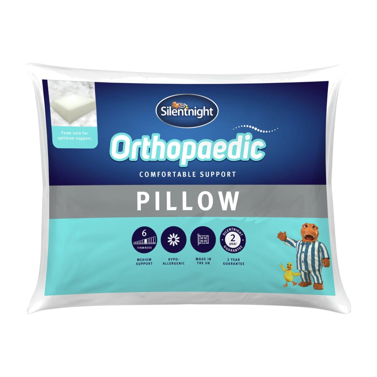 The Silentnight Orthopaedic Pillow offers optimum support for the head and neck to improve spinal alignment and ease muscular aches and pains. A supportive foam centre lies within the heart of the pillow to offer great support and comfort as you sleep. This pillow is hypoallergenic, made in the UK and comes with a 2 year peace of mind guarantee.