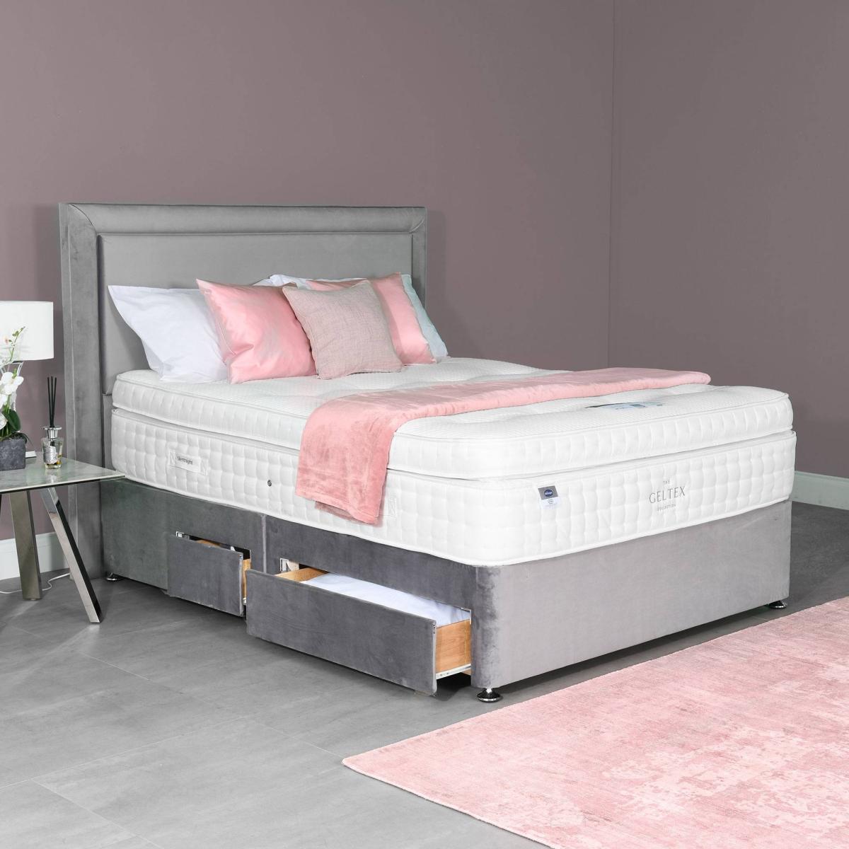 Silentnight Palatial Geltex Mattress and Divan Set - 180cm Super King - Half Ottoman 2 Conti Drawers - Standard Fabric
