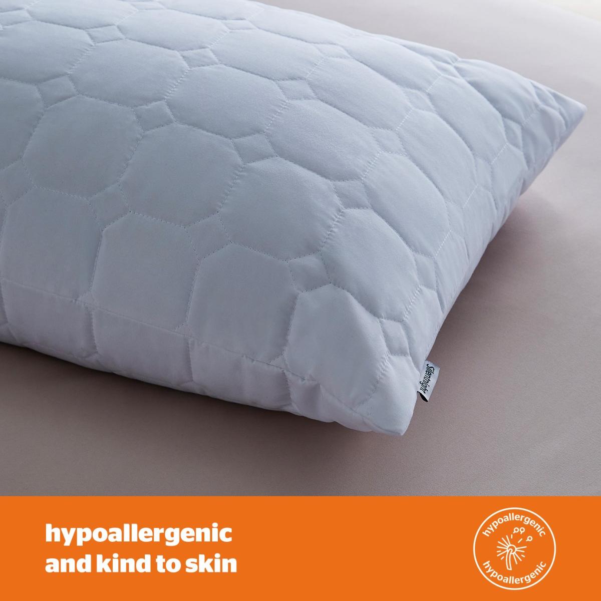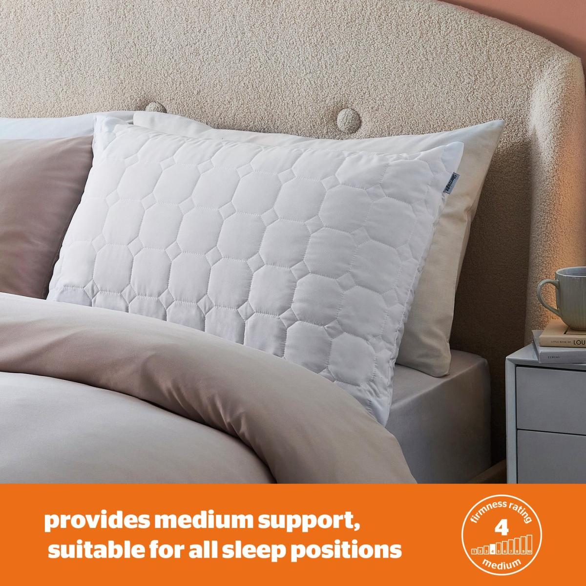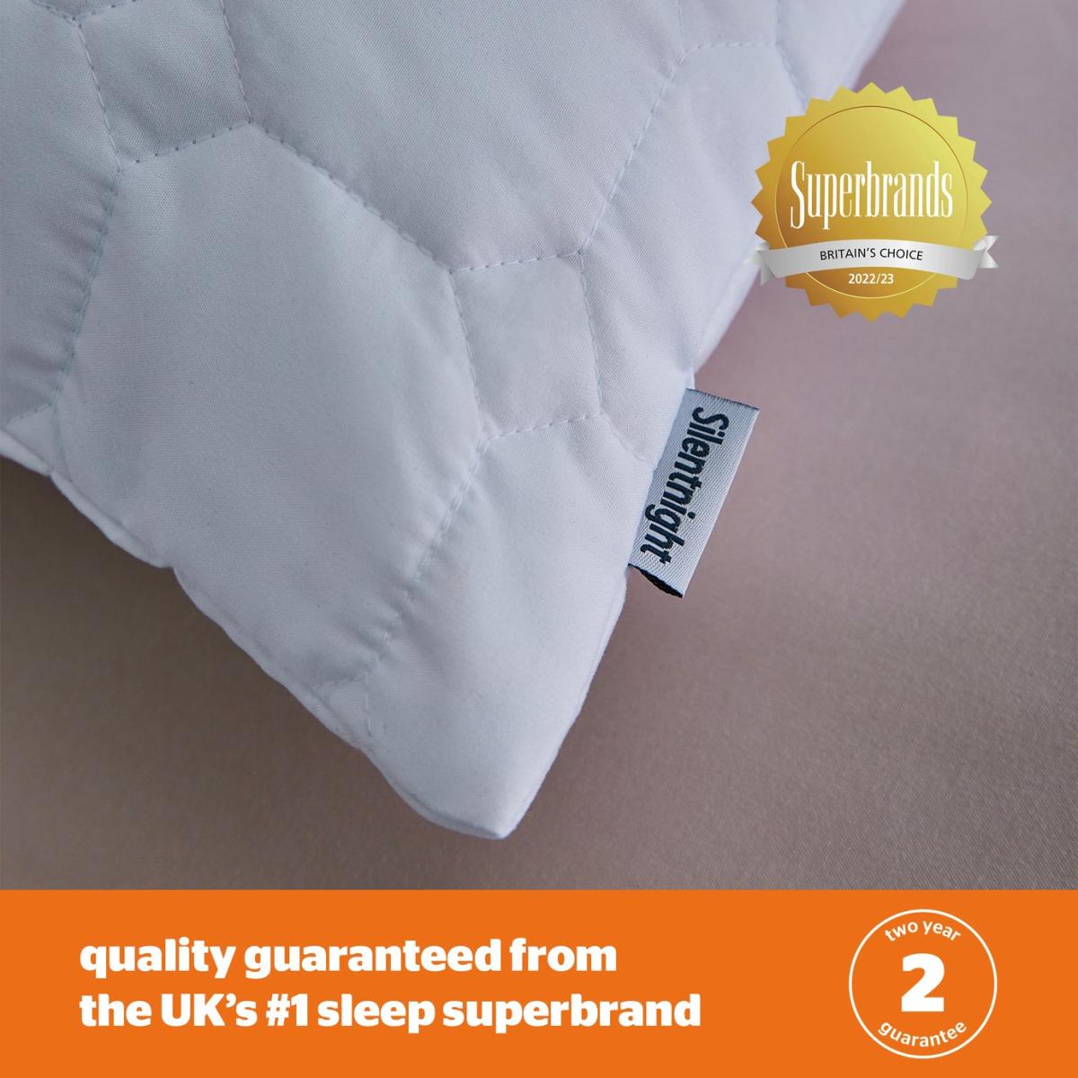 Soft quilted cover, filled with snuggly fibres for the ultimate cosy night's sleep. Both the pillow and the quilted cover are generously filled with bouncy fibres to provide ultimate bedtime snuggles whilst being suitable for all sleeping positions. The Silentnight Quilted Snuggle Pillow is made in the UK and comes with a 2 year manufacturer's guarantee. The pillow is hypoallergenic and machine washable so you can keep your pillow feeling fresh and hygienic for longer. Both the pillow and the quilted cover are generously filled with bouncy fibres to provide ultimate bedtime snuggles for the cosiest of sleeps. Pack quantity: 1. Cover made from 100% polyester. Filling made from 100% polyester. Soft pillow. Suitable for front sleepers. Size L76, W48cm. 0.7kg. Machine washable at 40 C. Suitable for tumble drying. Manufacturer's 2 year guarantee.