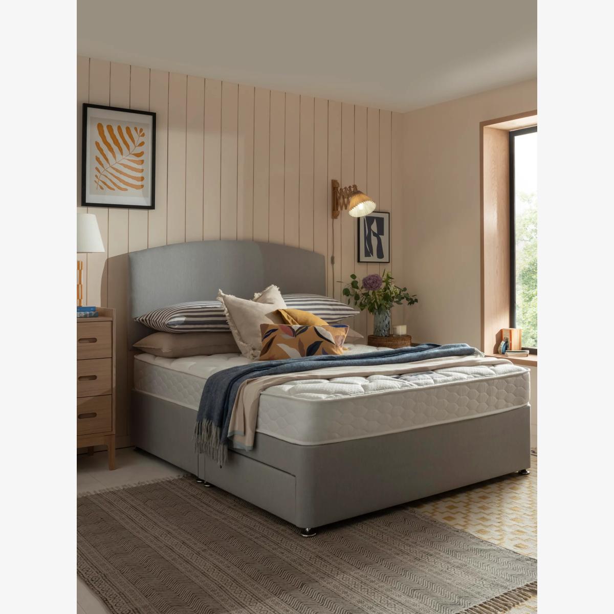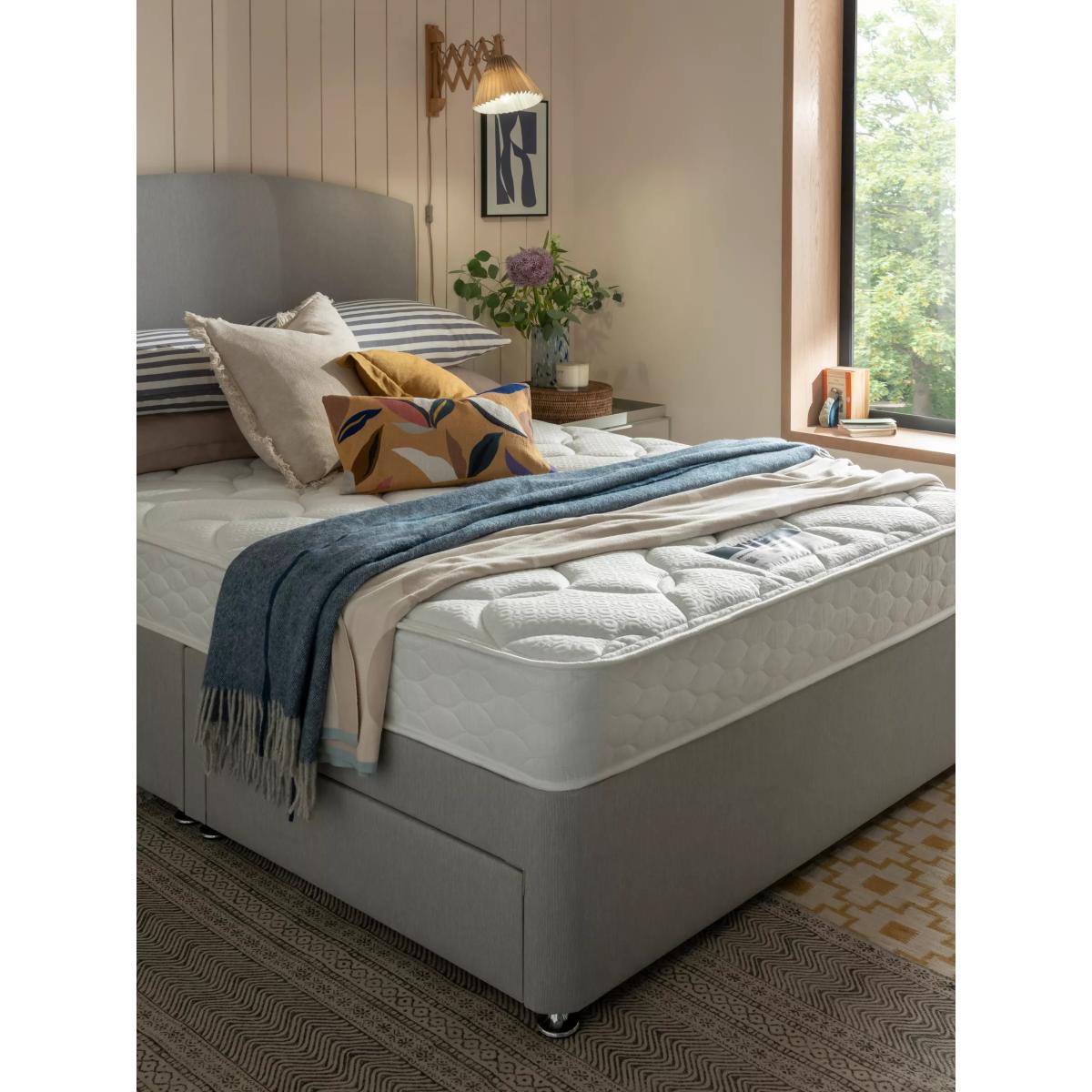 This divan set includes Silentnight's extra firm tension Recover Miracoil Comfort mattress and their non-sprung, upholstered divan base with two drawers. The mattress is well-suited for sleepers that get hot during the night as it has a comfort layer made from Eco Comfort breathable fibres that aid airflow for a cooler night's sleep. It also has a Miracoil® support system that provides zoned pressure relief where you need it most, especially to your spine and hips for improved posture and alignment. Its unique, no-roll spring design means that you can move without disturbing your partner, and it has a soft sleep surface that is hand-stitched directly onto the mattress filling for a smooth finish. Try before you buy This is an important purchase and it’s worth trying your new mattress in one of our shops to make sure it's right for you. Our Partners can tell you more about its benefits, and recommend options based on your needs.