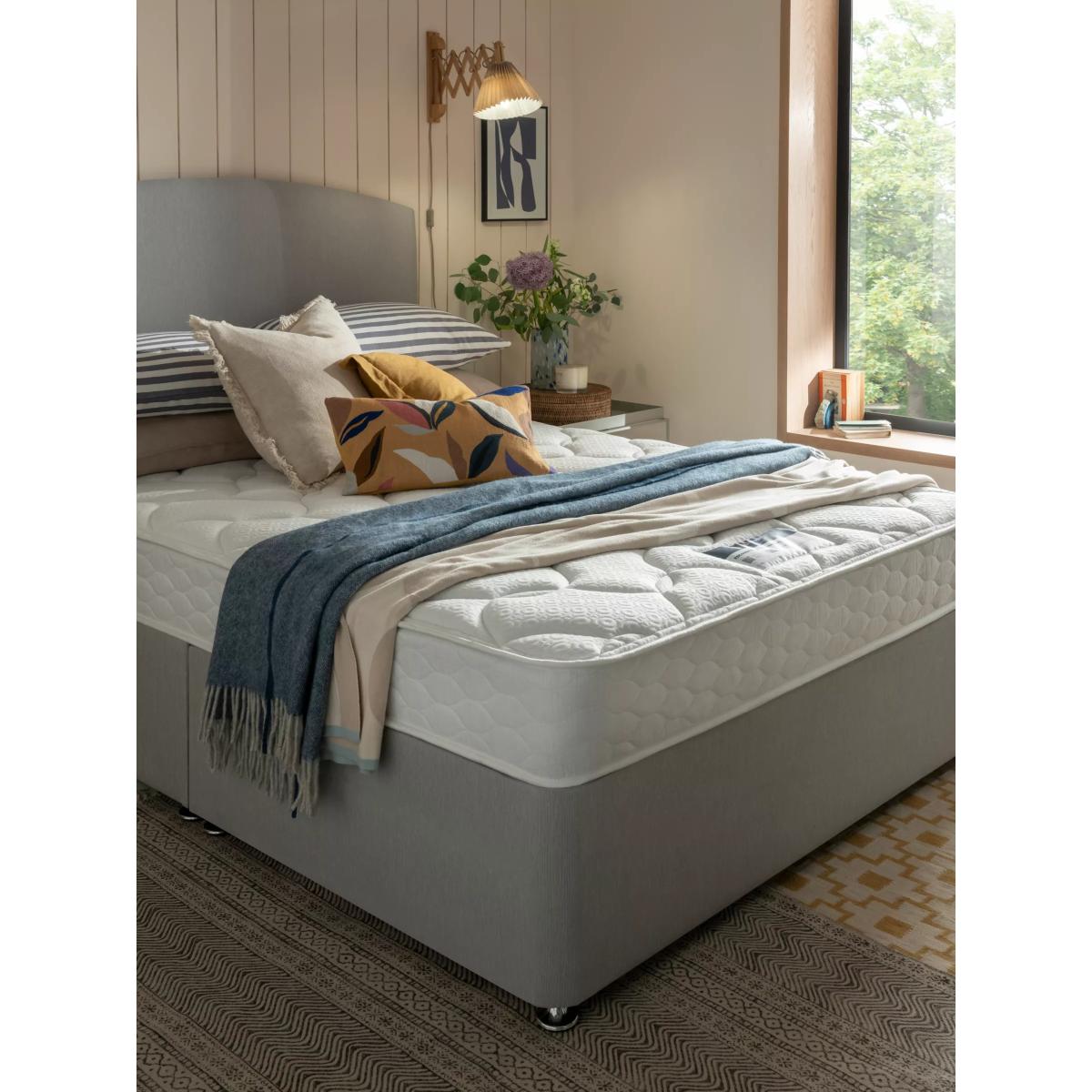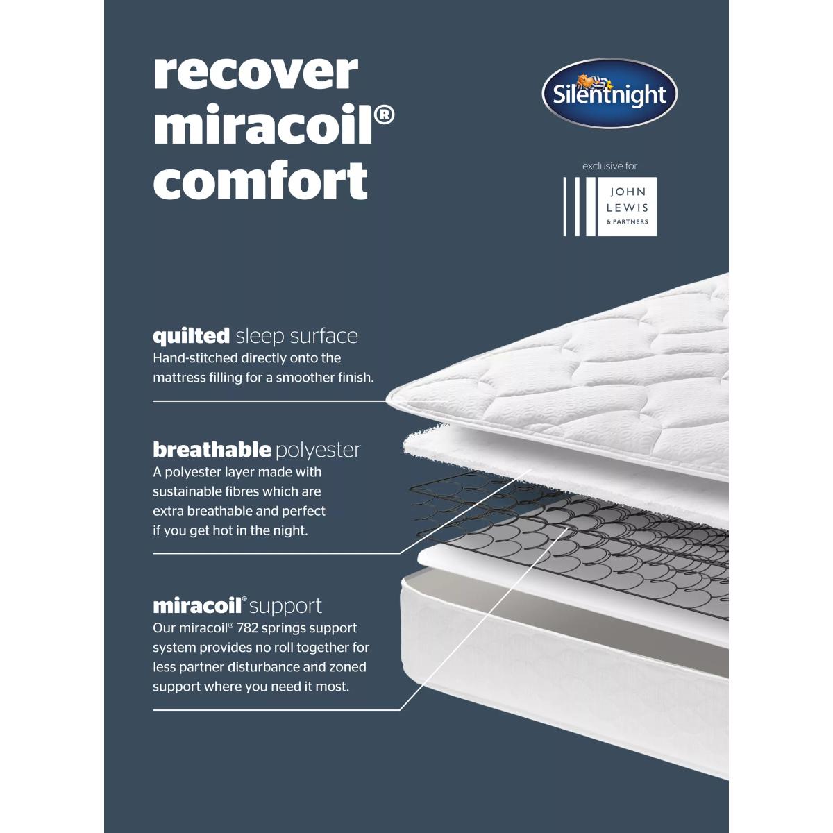 This divan set includes Silentnight's extra firm tension Recover Miracoil Comfort mattress and their non-sprung, upholstered divan base. The mattress is well-suited for sleepers that get hot during the night as it has a comfort layer made from Eco Comfort breathable fibres that aid airflow for a cooler night's sleep. It also has a Miracoil® support system that provides zoned pressure relief where you need it most, especially to your spine and hips for improved posture and alignment. Its unique, no-roll spring design means that you can move without disturbing your partner, and it has a soft sleep surface that is hand-stitched directly onto the mattress filling for a smooth finish. We recommend using a good quality mattress protector under your bed linen to protect your new mattress from spills and stains. Plus, to meet the conditions of our 60 Night Comfort Trial, you'll need to purchase a mattress protector in the same transaction as your mattress, and ensure it is used. Browse our range here. Try before you buy This is an important purchase and it’s worth trying your new mattress in one of our shops to make sure it's right for you. Our Partners can tell you more about its benefits, and recommend options based on your needs.