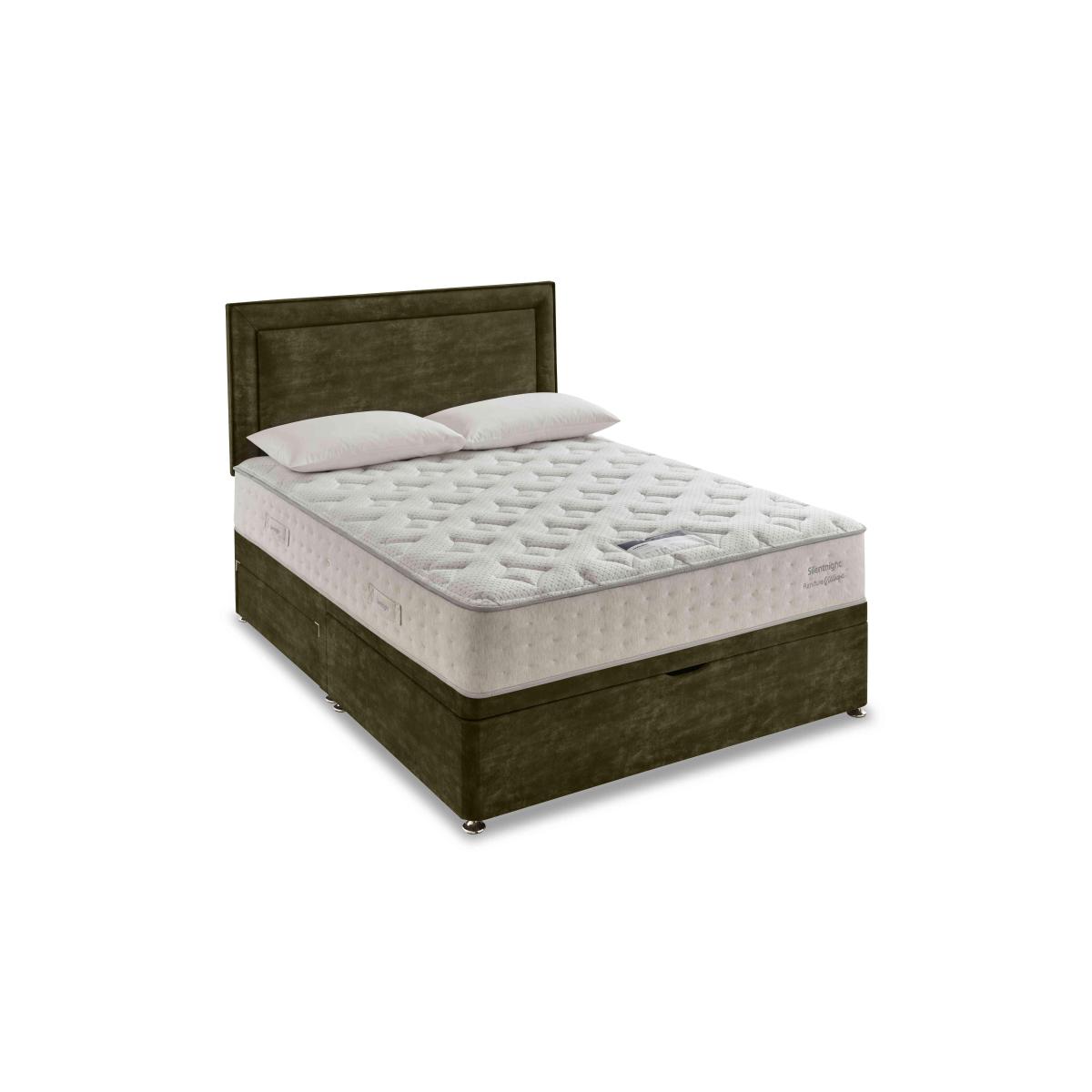 Revitalising sleep is yours with the mattresses and divan sets in our Silentnight Revitalise range. Mattresses feature Active. Breathe, a real alternative to memory foam that’s ten times more breathable and just as comfy and cushioning. Active Breathe helps regulate body temperature and offers incredible pressure relief along with a foam-like feel that allows for ease of movement as you sleep. The result? You wake feeling revitalised and raring to go. And because everyone’s different, the Silentnight Revitalise collection comprises four different mattresses: Revitalise Refresh 800, Revitalise Ortho 1400, Revitalise Restore 1600 and Revitalise Breathe 3000 Pi. Illowtop. The collection also includes beautifully upholstered divan sets with optional drawer, ottoman and half ottoman storage. Only at Furniture Village. Style, storage and the firm ortho mattress feel you love – it’s all built into this half ottoman divan set. The mattress has a unique comfort layer that’s ten times more breathable than memory foam. Why you'll love it Half ottoman divan set with high-performance ortho mattress promises truly revitalising sleep. Innovative Active Breathe layer feels like memory foam but is ten times more breathable. ActiveBreathe layer feels like memory foam but is ten times more breathable. This innovative layer ensures ease of movement, temperature regulation and pressure relief. Features Silentnight’s Mirapocket® spring system with 1400 pocket springs in king size. Zoned support for even weight distribution, improved spinal alignment and fewer aches and pains. Eternity layer gives this mattress extra stability and long lasting resilience. Built to ensure that when you move at night you don’t disturb the person next to you. Superb eco-credentials – it’s made with 60% recycled materials and is 100% recyclable. Divan base with half ottoman storage in a choice of upholstery fabrics. Handmade in England by Silentnight for Furniture Village. Silentnight is a carbon-neutral company and is committed to achieving net zero by 2040. This half ottoman divan set is part of our exclusive Silentnight Revitalise Collection. What you need to know Mattress type: Pocket spring. Depth: 25.5 cm. Weight:Double 33.5 kg, king 39 kg and super king 47 kg. Firmness: Extra firm. Springs: 1400 in king size. Fillings: Polyester, Active Breathe fibre. Cover: Polyester. Requires turning: No. Base type: Platform top with half ottoman storage. Sizes: Double, king, super king. Mattress care:Air for 4 hours before using to remove any odour. Indentations caused by settlement of fillings or body weight are normal and are not considered defects. If used on a slatted bed frame, the space between slats must be no wider than 7.5 cm. Spaces wider than this may cause excess dipping of the mattress and invalidate the guarantee. Always use a mattress protector. Rotate regularly. Divan base care: Clean upholstery weekly using a soft brush or vacuum with the curtain attachment. Professional cleaning advised for oil- and grease-based stains. Some fabrics can show wear on areas of more use or in direct sunlight.
