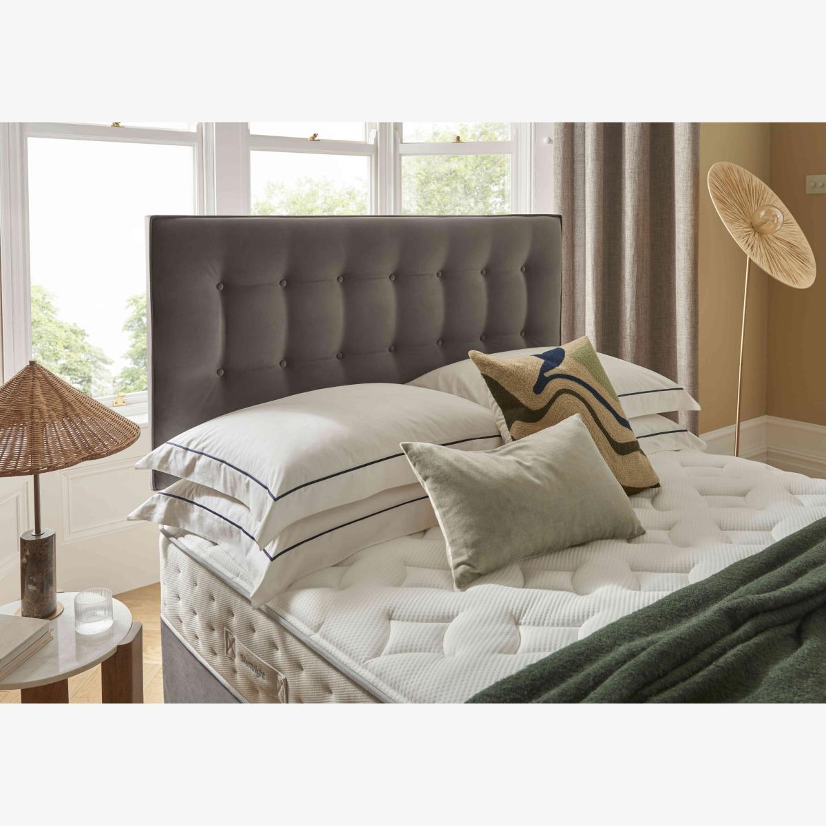 Revitalising sleep is yours with the mattresses and divan sets in our Silentnight Revitalise range. Mattresses feature Active. Breathe, a real alternative to memory foam that’s ten times more breathable and just as comfy and cushioning. Active Breathe helps regulate body temperature and offers incredible pressure relief along with a foam-like feel that allows for ease of movement as you sleep. The result? You wake feeling revitalised and raring to go. And because everyone’s different, the Silentnight Revitalise collection comprises four different mattresses: Revitalise Refresh 800, Revitalise Ortho 1400, Revitalise Restore 1600 and Revitalise Breathe 3000 Pi. Illowtop. The collection also includes beautifully upholstered divan sets with optional drawer, ottoman and half ottoman storage. Only at Furniture Village. You’ll love the extra storage that this half ottoman divan set gives you. And the firm-feel mattress with breathable comfort layer is a winner too. Why you'll love it Half ottoman divan set with high-performance firm-feel mattress promises truly refreshing sleep. ActiveBreathe layer feels like memory foam but is ten times more breathable. This innovative layer ensures ease of movement, temperature regulation and pressure relief. Features Silentnight’s Mirapocket® spring system with 800 pocket springs in king size. Zoned support for even weight distribution, improved spinal alignment and fewer aches and pains. Eternity layer gives this mattress extra stability and long lasting resilience. Built to ensure that when you move at night you don’t disturb the person next to you. Superb eco-credentials – it’s made with 60% recycled materials and is 100% recyclable. Divan base with half ottoman storage in a choice of upholstery fabrics. Handmade in England by Silentnight for Furniture Village. Silentnight is a carbon-neutral company and is committed to achieving net zero by 2040. This half ottoman divan set is part of our exclusive Silentnight Revitalise collection. What you need to know Mattress type: Pocket spring. Depth: 27.5 cm. Weight:Double 32 kg, king 37.5 kg and super king 45 kg. Firmness: Firm. Springs: 800 in king size. Fillings: Polyester, Active Breathe fibre. Cover: Polyester. Requires turning: No. Base type: Platform top with half ottoman storage. Sizes: Double, king, super king. Mattress care:Air for 4 hours before using to remove any odour. Indentations caused by settlement of fillings or body weight are normal and are not considered defects. If used on a slatted bed frame, the space between slats must be no wider than 7.5 cm. Spaces wider than this may cause excess dipping of the mattress and invalidate the guarantee. Always use a mattress protector. Rotate regularly. Divan base care: Clean upholstery weekly using a soft brush or vacuum with the curtain attachment. Professional cleaning advised for oil- and grease-based stains. Some fabrics can show wear on areas of more use or in direct sunlight.