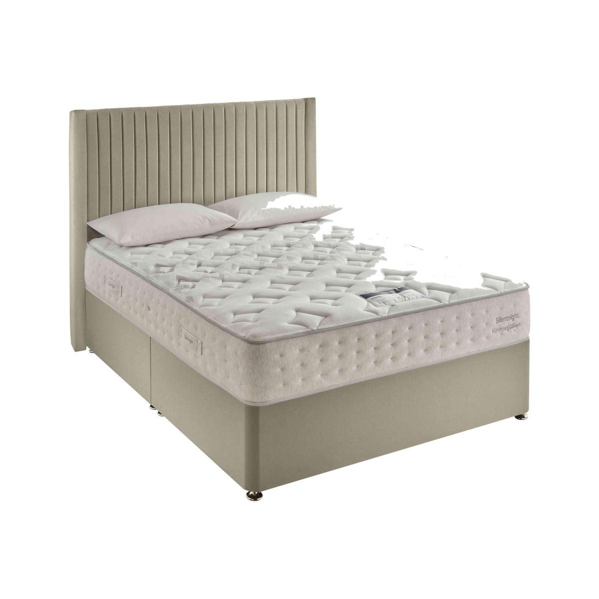 Revitalising sleep is yours with the mattresses and divan sets in our Silentnight Revitalise range. Mattresses feature Active. Breathe, a real alternative to memory foam that’s ten times more breathable and just as comfy and cushioning. Active Breathe helps regulate body temperature and offers incredible pressure relief along with a foam-like feel that allows for ease of movement as you sleep. The result? You wake feeling revitalised and raring to go. And because everyone’s different, the Silentnight Revitalise collection comprises four different mattresses: Revitalise Refresh 800, Revitalise Ortho 1400, Revitalise Restore 1600 and Revitalise Breathe 3000 Pi. Illowtop. The collection also includes beautifully upholstered divan sets with optional drawer, ottoman and half ottoman storage. Only at Furniture Village. You’ll wake feeling genuinely restored when you sleep on this Silentnight divan set. The pocket spring mattress has a unique Active Breathe comfort layer that helps keep you cool as well as cushioned. Why you'll love it Divan set with high-performance medium-feel mattress promises truly restorative sleep. ActiveBreathe layer feels like memory foam but is ten times more breathable. This innovative layer ensures ease of movement, temperature regulation and pressure relief. Features Silentnight’s Mirapocket® spring system with 600 pocket springs and 1000 mini springs in king size. Zoned support for even weight distribution, improved spinal alignment and fewer aches and pains. Eternity layer gives this mattress extra stability and long lasting resilience. Built to ensure that when you move at night you don’t disturb the person next to you. Superb eco-credentials – it’s made with 60% recycled materials and is 100% recyclable. Divan base with optional drawers in a choice of upholstery fabrics. Handmade in England by Silentnight for Furniture Village. Silentnight is a carbon-neutral company and is committed to achieving net zero by 2040. This divan set is part of our exclusive Silentnight Revitalise Collection. What you need to know Mattress type: Pocket spring. Depth: 27 cm. Weight:Single 21 kg, double 32 kg, king 37.5 kg and super king 45 kg. Firmness: Medium. Springs: 600 pocket springs plus 1000 mini springs in king size. Fillings: Polyester, Active Breathe fibre. Cover: Polyester. Requires turning: No. Base type: Platform top with optional storage drawers. Sizes: Single, double, king, super king. Mattress care:Air for 4 hours before using to remove any odour. Indentations caused by settlement of fillings or body weight are normal and are not considered defects. If used on a slatted bed frame, the space between slats must be no wider than 7.5 cm. Spaces wider than this may cause excess dipping of the mattress and invalidate the guarantee. Always use a mattress protector. Rotate regularly. Divan base care: Clean upholstery weekly using a soft brush or vacuum with the curtain attachment. Professional cleaning advised for oil- and grease-based stains. Some fabrics can show wear on areas of more use or in direct sunlight.