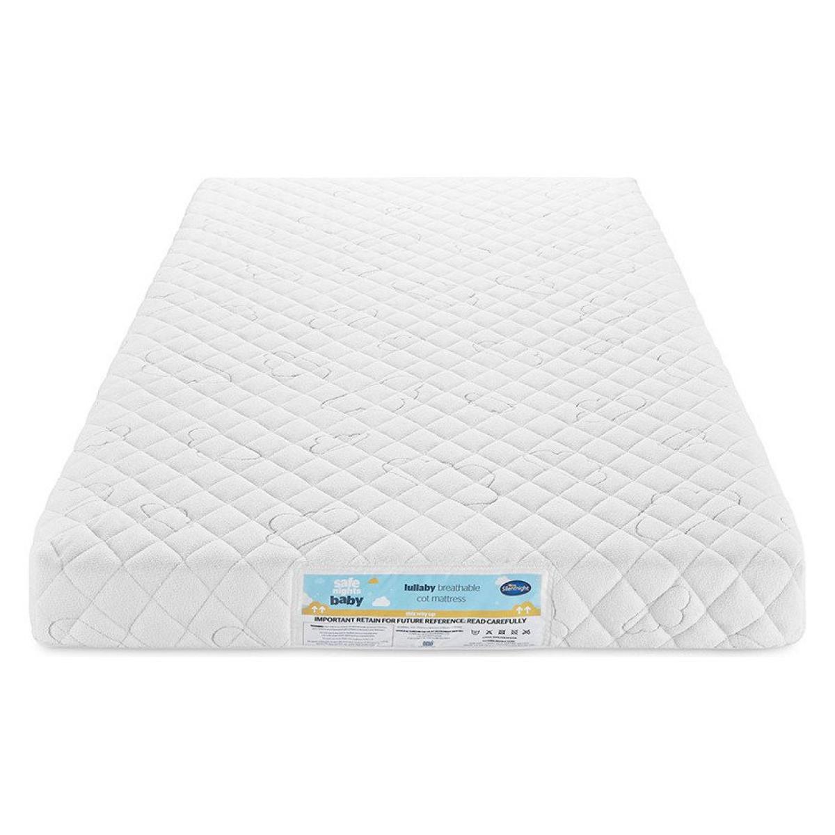 Silentnight understand comfort for your little one is key, so they get the sleep they need to thrive. Our Lullaby mattress is foam and chemical treatment free for a pure sleeping experience. The beautiful cloud pattern sleep surface is hypoallergenic, reducing the symptoms of allergies. Featuring our extra comfortable, breathable polyester core and a washable cover for convenience. Tried and tested to the highest standards in our Satra approved testing lab for your peace of mind. Providing the safest possible sleeping environment for babies is Silentnight's priority. Cot mattress cover is machine washable at 40 C. Plus, the cleverly designed core means the mattress can still be slept on whilst the outer cover is being washed. Beautiful and cosy soft touch fabric with a cloud print design and a breathable core which is comfortable and supportive for babies sleep. Silentnight is the UK's most trusted sleep brand, with over 75 years of sleep expertise. Silentnight Safe Nights range is handmade in the UK. Suitable for cot beds. Hypoallergenic. Allergenic. Core material polyester. Polyester,. Removable washable cover. General information: Size L140, W70, D10cm. Manufacturer's 5 year guarantee.