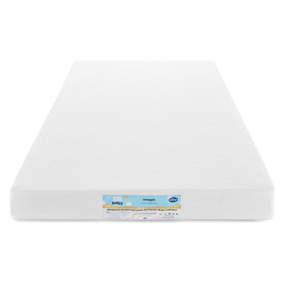 Silentnight are the UK's most trusted sleep brand, with over 75 years of sleep expertise. We understand comfort for your little one is key, so they get the sleep they need to thrive. Our Silentnight Snuggle Cot mattress is foam and chemical treatment free for a pure sleeping experience. The beautiful cloud pattern sleep surface is hypoallergenic, reducing the symptoms of allergies. This mattress features our extra comfortable, breathable polyester core, creating the perfect sleeping environment for your baby. Tried and tested to the highest standards in our Satra approved testing lab for your peace of mind. Providing the safest possible sleeping environment for babies is Silentnight's priority. Beautiful cloud print fabric design and a breathable core for a comfortable night's sleep. Cot mattress cover is machine washable at 40 C. Silentnight is the UK's most trusted sleep brand, with over 75 years of sleep expertise. Silentnight Safe Nights range is handmade in the UK. Suitable for cot beds. Hypoallergenic. Allergenic. Core material polyester. Polyester,. Removable washable cover. General information: Size L140, W70, D10cm. Manufacturer's 5 year guarantee.