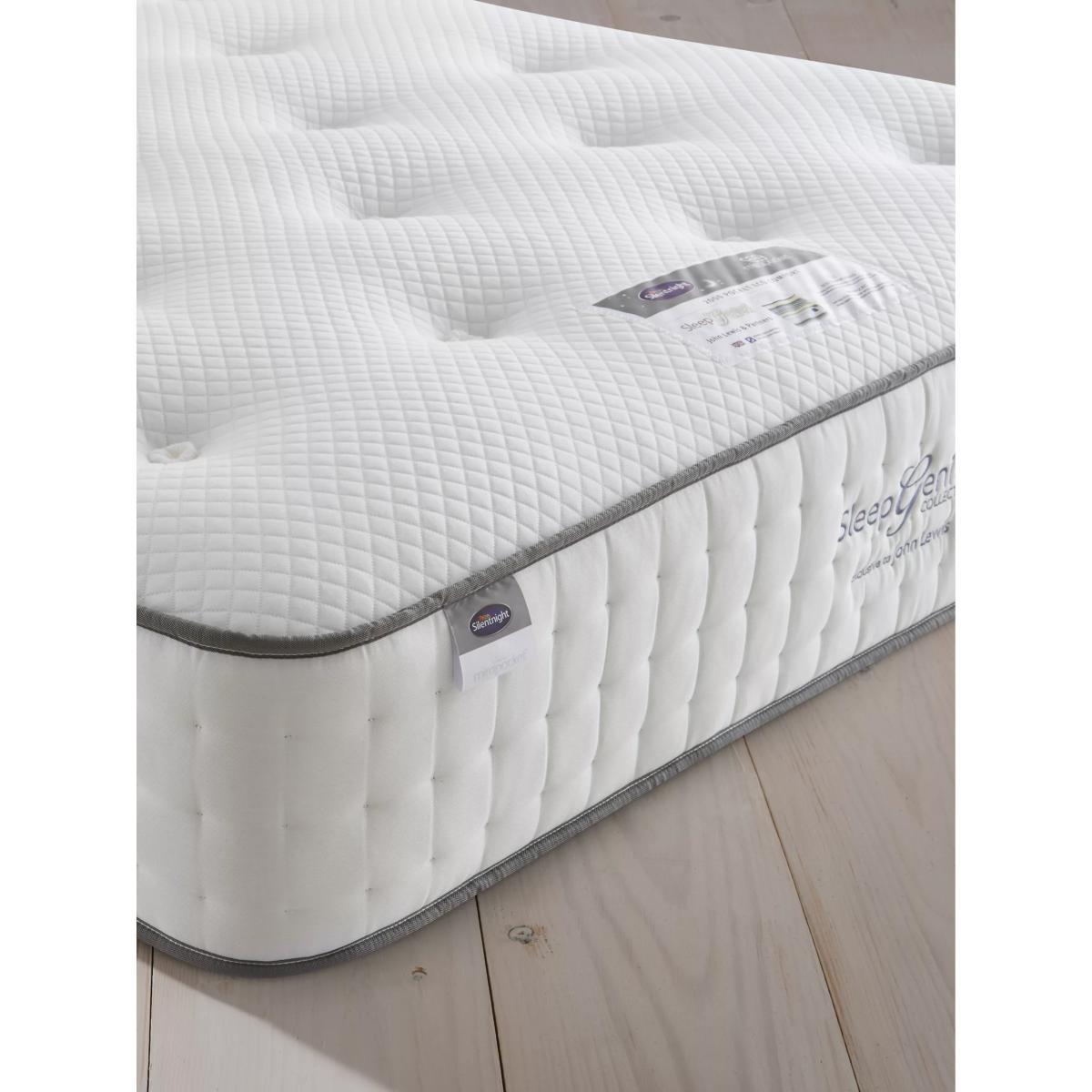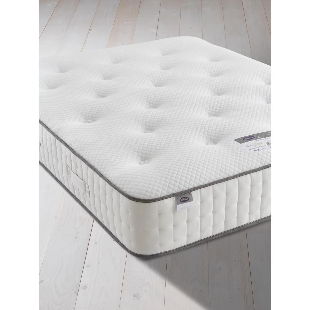 EcoComfort Fibre™ Layer Silentnight's Eco range features eco-friendly mattresses made with sustainable fibres that enhance a cool and refreshing night's sleep. The eco comfort filling is highly breathable, so these mattresses are ideal for sleepers who get hot during the night. Made from recycled plastic bottles Keeping the environment in mind, the Eco Comfort Fibre™ is fully recylable at end of life. This clever comfort layer allows you to move freely throughout the night and provides responsive support. Zoned Mirapocket® support A layer of individual pocket springs conform and adjust to your body weight providing truly tailored support. Each spring responds and reacts to your movement and acts independently, so when you move throughout the night your partner won't feel a thing, meaning you'll both enjoy a more restful night's sleep. Say goodbye to niggling aches and pains Silentnight's pressure-relieving zoned support system has been scientifically proven to improve your spinal alignment and posture. Quilted sleep surface Topped with a quilted finish, perfect for sleepers who prefer a smoother sleep surface. Medium A little bit of give, but with that extra level of support. Great for both back and side sleepers. Single sided Rotate from head-to-toe regularly to get the most out of your mattress. Try before you buy This is an important purchase and it's worthwhile to try your choice of mattress in store to make sure it's right for you. Our store Partners will be able to tell you more about its benefits, and recommend options based on your needs. Extend the life of your new mattress with a durable and breathable mattress protector.