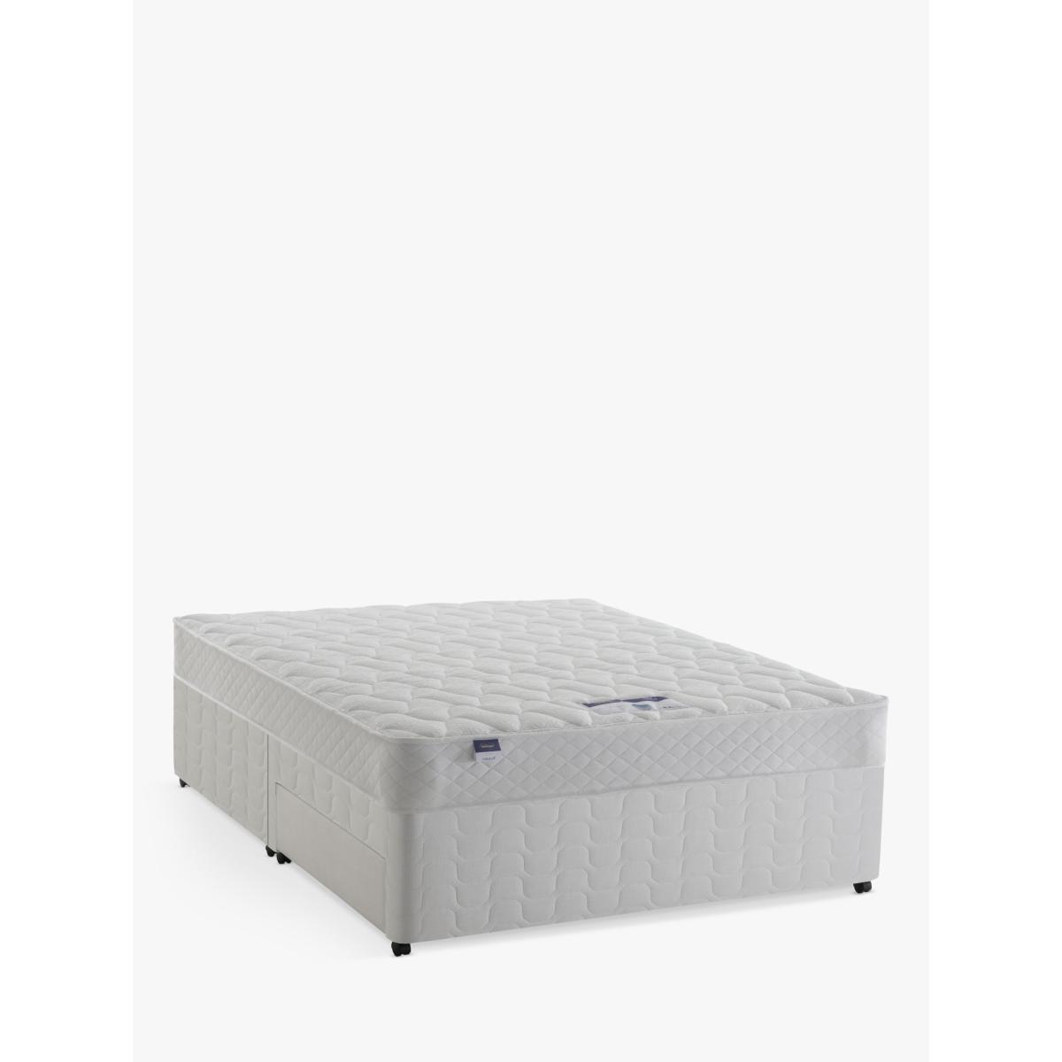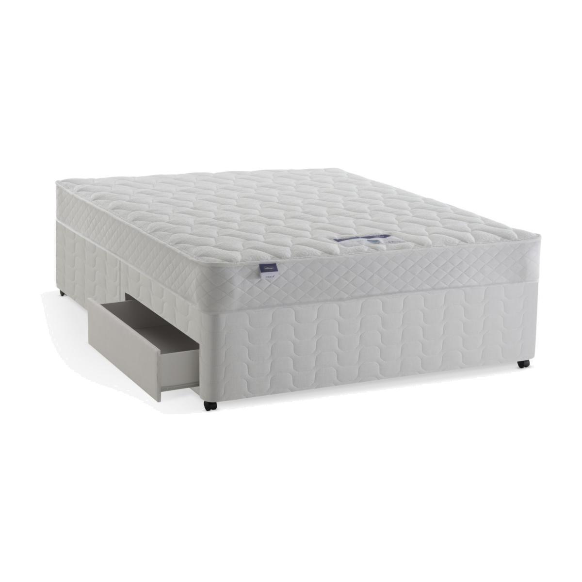 Made in the UK Silentnight's Sleep Soundly divan set from provides a space-saving storage solution for your bedroom. The quilted white divan base has two storage drawers and comes with a firm miracoil® comfort mattress. A headboard is not included. About the mattress: Silentnight's Eco range features eco-friendly mattresses made with sustainable fibres that enhance a cool and refreshing night's sleep. The eco comfort filling in this mattress is highly breathable, making it ideal for sleepers who get hot during the night Keeping the environment in mind, the Eco Comfort Fibre™ is made from recycled plastic bottles and is fully recyclable at end of life. This clever comfort layer allows you to move freely throughout the night and provides responsive support This mattress is made with a Miracoil® support system which provides zoned support where you need it most. Scientifically proven to improve your spinal alignment and posture, the unique spring design means your partner won’t be disturbed when you move This firm mattress provides support from head-to-toe. Sleeping on a firmer surface gives support to the whole body and can help with back issues Rotate from head-to-toe regularly to get the most out of your mattress About the divan base: The base is easy-to-assemble. It's split into two sections to ensure easy access around staircases and into bedrooms By choosing this product you are supporting responsible management of the world’s forests. The Forest Stewardship Council® (FSC®) is a global, not-for-profit organisation that helps take care of forests and the people and wildlife that call them home. To learn more, visit. Try before you buy This is an important purchase and it’s worthwhile to try your choice of mattress in store to make sure it's right for you. Our store Partners will be able to tell you more about its benefits, and recommend options based on your needs.