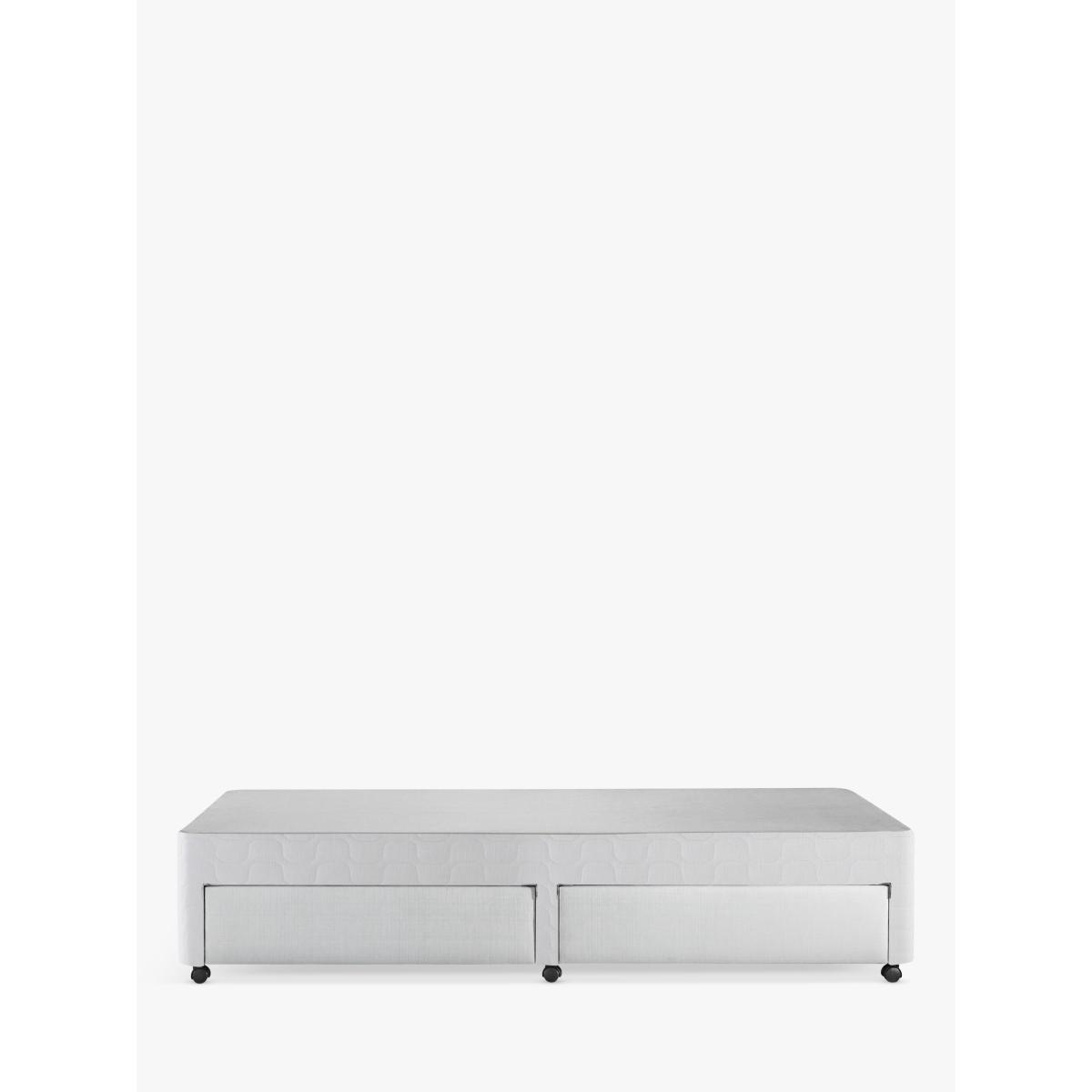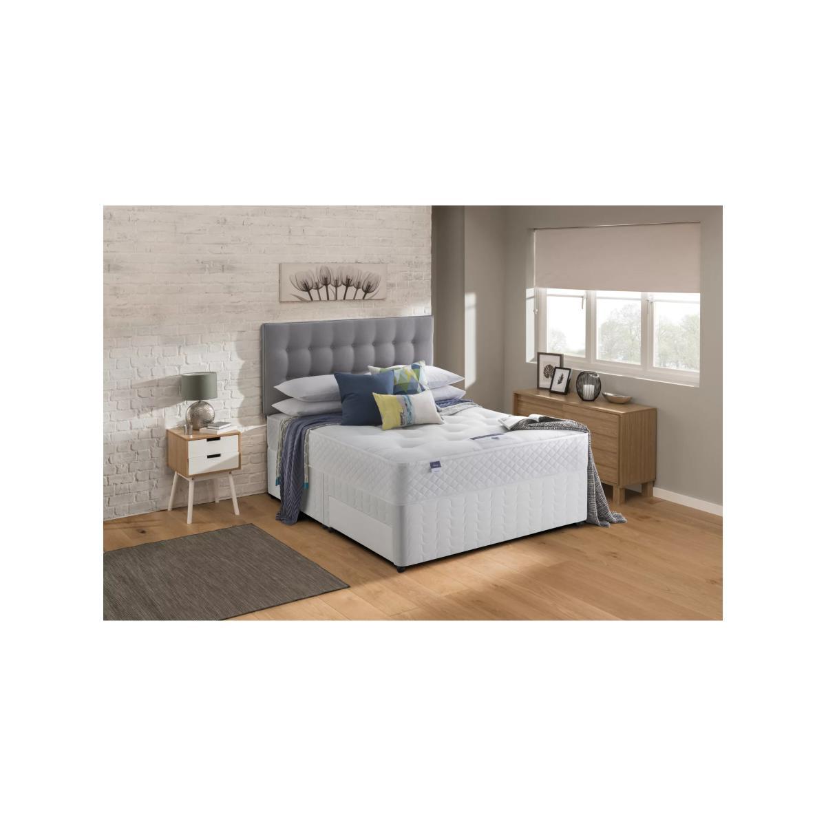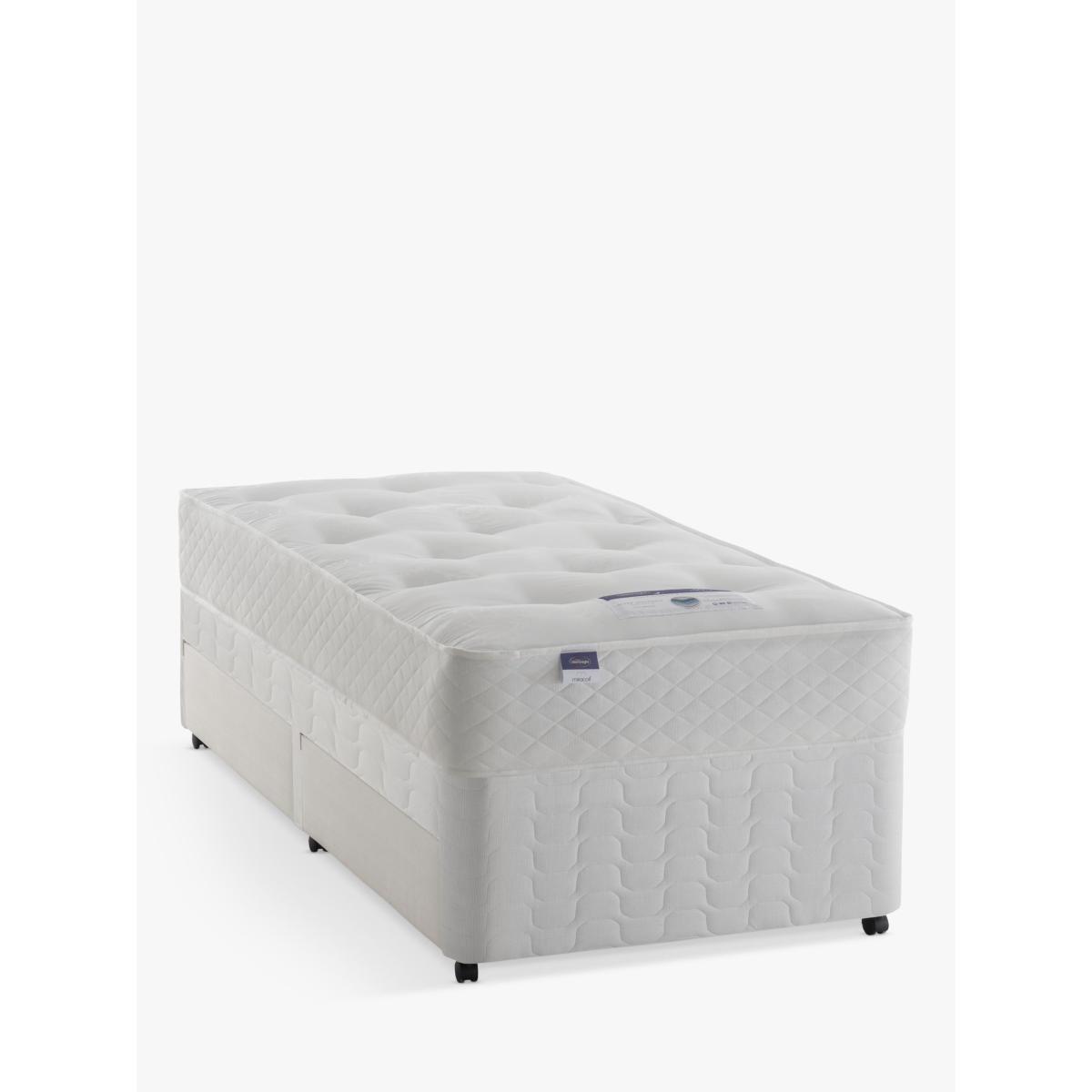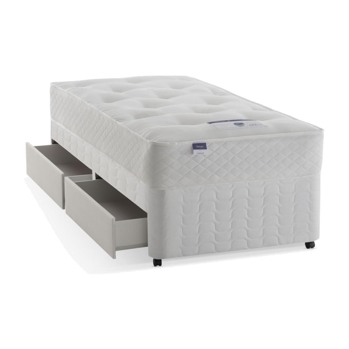 Made in the UK Silentnight's Sleep Soundly divan set from provides a space-saving storage solution for your bedroom. The quilted white divan base has two storage drawers and comes with a firm miracoil® orthopaedic mattress. A headboard is not included. About the mattress: Silentnight's Eco range features eco-friendly mattresses made with sustainable fibres that enhance a cool and refreshing night's sleep. The eco comfort filling in this mattress is highly breathable, making it ideal for sleepers who get hot during the night Keeping the environment in mind, the Eco Comfort Fibre™ is made from recycled plastic bottles and is fully recyclable at end of life. This clever comfort layer allows you to move freely throughout the night and provides responsive support This mattress is made with a Miracoil® support system which provides zoned support where you need it most. Scientifically proven to improve your spinal alignment and posture, the unique spring design means your partner won’t be disturbed when you move Firm and orthopaedic, this mattress provides support from head-to-toe. Sleeping on this firmer surface gives support to the whole body and can help with back issues Rotate from head-to-toe regularly to get the most out of your mattress About the divan base: The base is easy-to-assemble. It's split into two sections to ensure easy access around staircases and into bedrooms By choosing this product you are supporting responsible management of the world’s forests. The Forest Stewardship Council® (FSC®) is a global, not-for-profit organisation that helps take care of forests and the people and wildlife that call them home. To learn more, visit. Try before you buy This is an important purchase and it’s worthwhile to try your choice of mattress in store to make sure it's right for you. Our store Partners will be able to tell you more about its benefits, and recommend options based on your needs.