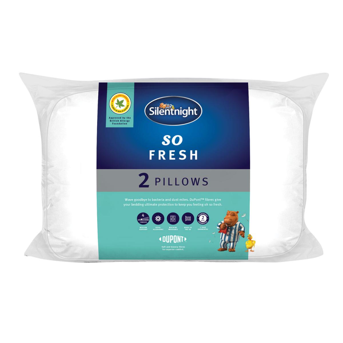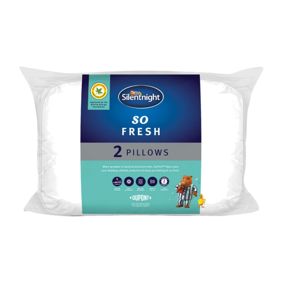Feel fresh throughout the night with the Silentnight So Fresh Pillows. Filled with soft and bouncy anti-allergy DuPont fibres for superior comfort and protection. Our anti-allergy fibres are approved by the British Allergy Foundation, which means they have the ultimate seal of approval and are ideal for keeping your pillows free from bacteria. Providing soft/medium support, these pillows are suitable for all sleep positions.