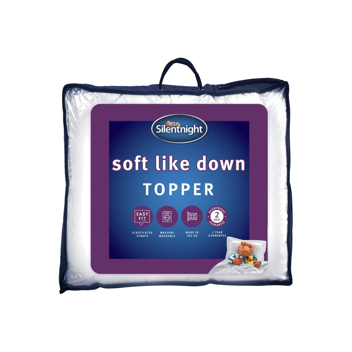 Add a soft, down like feel to your mattress with Silentnight. Microfibre cover with soft touch filling makes this topper a perfect choice for a good night's sleep. Features elasticated corner straps. Set includes: 1 topper. Suitable for single beds. Size L193, W90, D2.5cm. Cover made from 100% polyester microfibre. 100% polyester microfibre reverse. 100% polyester hollowfibre filling. Secured by elasticated corner straps. Non-allergenic. Cover is machine washable and suitable for tumble drying.