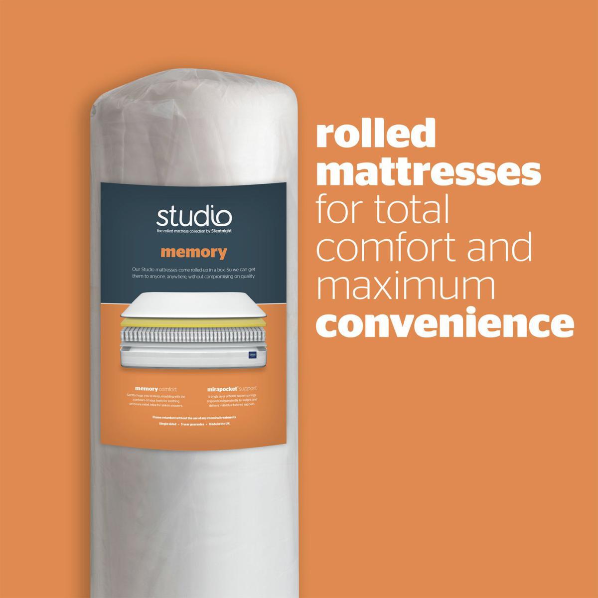 Cocoon yourself in supportive comfort. Ideal for sink-in snoozers - Ideal for those who love that sink-in feeling at bedtime, the Studio Memory mattress is designed to gently hug you to sleep, moulding with the contours of your body. Thanks to its memory layer, it offers soothing pressure relief and ultimate comfort. The mirapocket layer inside uses 1000 pocket springs to individually respond to movement and deliver individual tailored support.