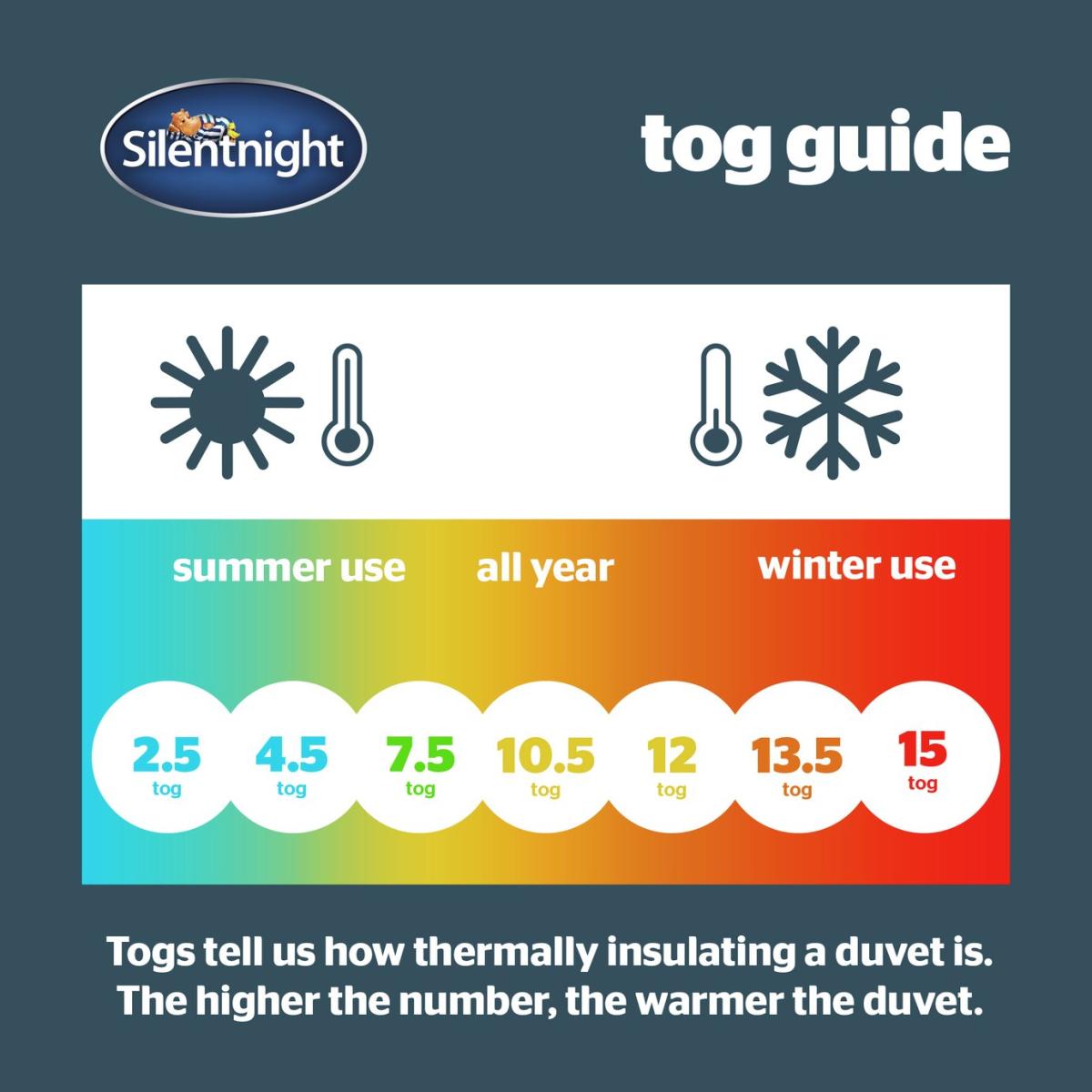 Sleep breezy on summer nights with the Silentnight Summer Breeze 2.5 Tog Duvet. Soft and light, perfect for over-heater, 2.5 tog is our lowest tog duvet, specially designed for summer. The light breathable fibres mean your duvet won't feel heavy or restrictive, whilst also allowing heat and humidity to escape. The Silentnight Summer Breeze Duvet is hypoallergenic, machine washable and fast drying. Silentnight are the UK's most trusted sleep brand with over 75 years' experience in creating products that offer solutions for every sleeper. King size duvet. 2.5 tog duvet. Cover made from 100% polyester. Filling made from 100% hollowfibre polyester. Size L220, W225cm. 2.15kg. Machine washable at 40 C. Suitable for washing in a standard size washing machine. Non-allergenic. Manufacturer's 5 year guarantee.