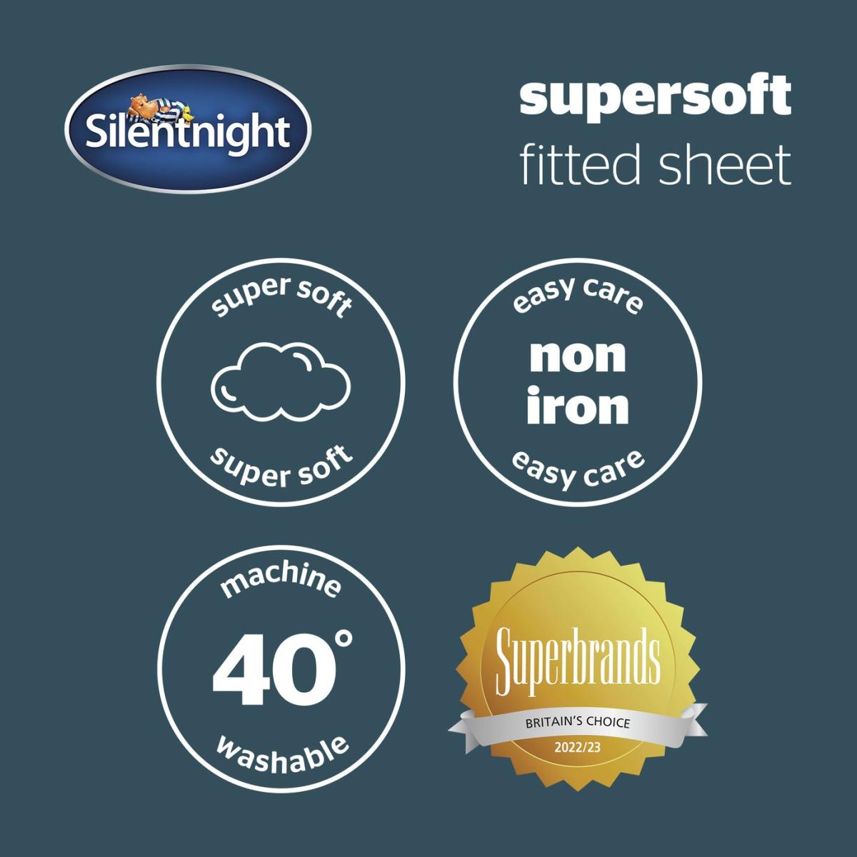 The Silentnight Supersoft Fitted Sheet is crafted from beautifully soft microfibre for a cosy and snuggly night's sleep. The fitted sheet is easy to care for and will withstand machine washing, retaining its shape wash after wash. The elasticated corners hug the corners of your mattress to keep the sheet safely in place. Designed in Britain by Silentnight, the UK's number one sleep brand, with over 75 years' experience in creating products that offer solutions for every sleeper. The Silentnight Supersoft Fitted Sheets combine luxury and comfort for a blissful night's sleep. Made from deluxe microfibre which is soft to the touch and easy to care for. Fabric finish: brushed. 100% polyester,. Single. Size L190, W90cm. Suitable for mattress depth of 28cm. Elasticated edges. Machine wash as synthetic at 40 C. Suitable for tumble drying.