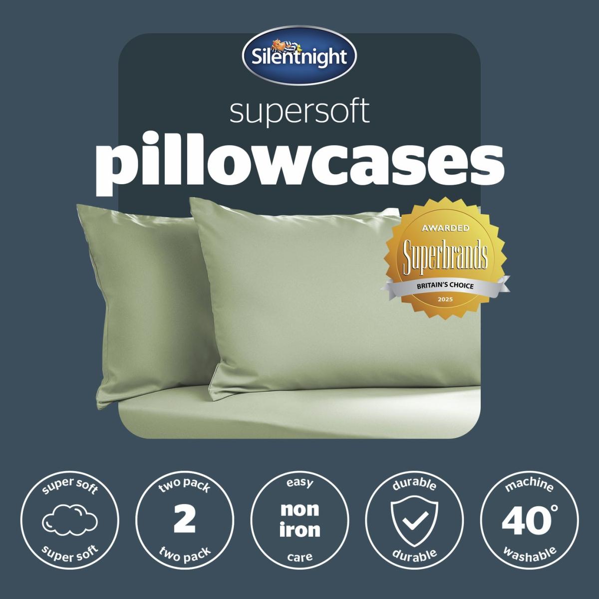 Silentnight Supersoft Plain Standard Pillowcase Pair - Green