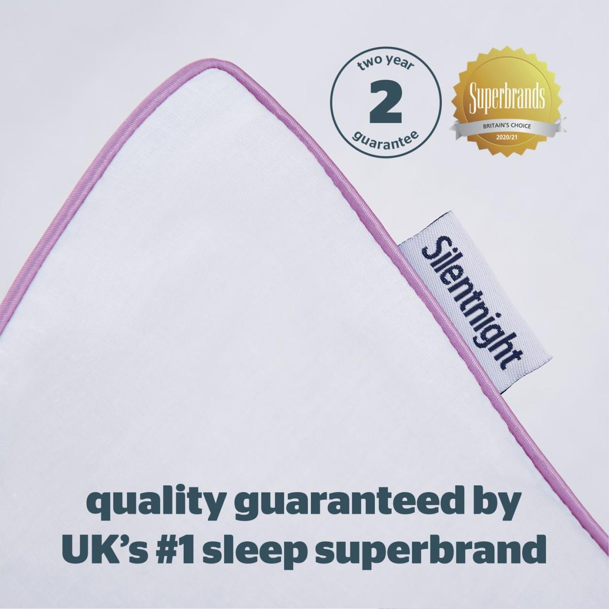 The Silentnight Lavender Pillow is fragranced with a calming lavender scent to help create a tranquil environment which promotes a deeper more restful sleep. The lavender scent works gently to calm your mood so that you can drift into a deep and peaceful sleep. The pillow is soft to touch with a delicate lilac piping so that you can enjoy a restful night's sleep. Proudly made in the UK, the pillow is fully machine washable to keep it feeling supremely fresh and clean.