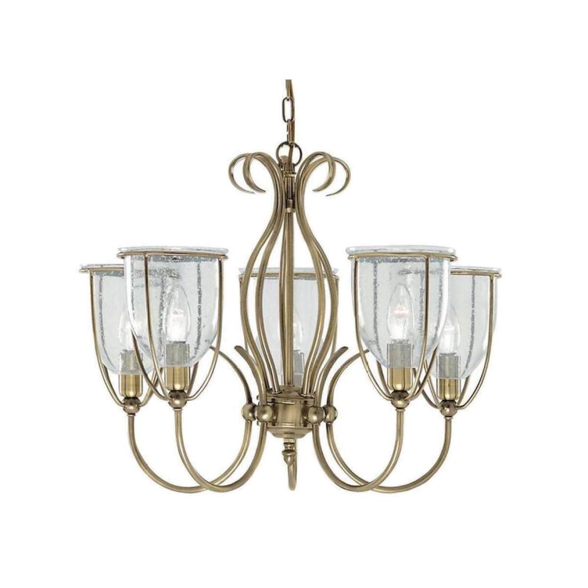 Silhouette 5 Light Ceiling Pendant Antique Brass Seeded Glass Shades, E14 - Antique Brass