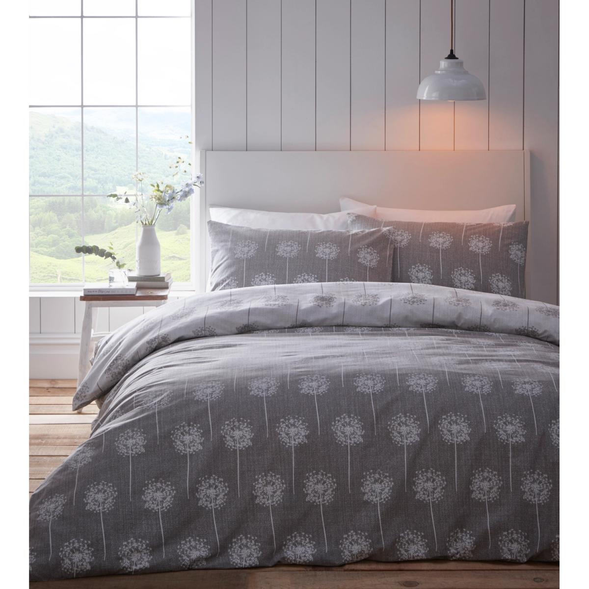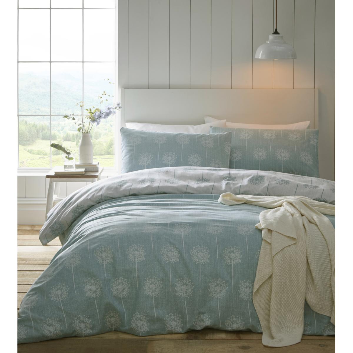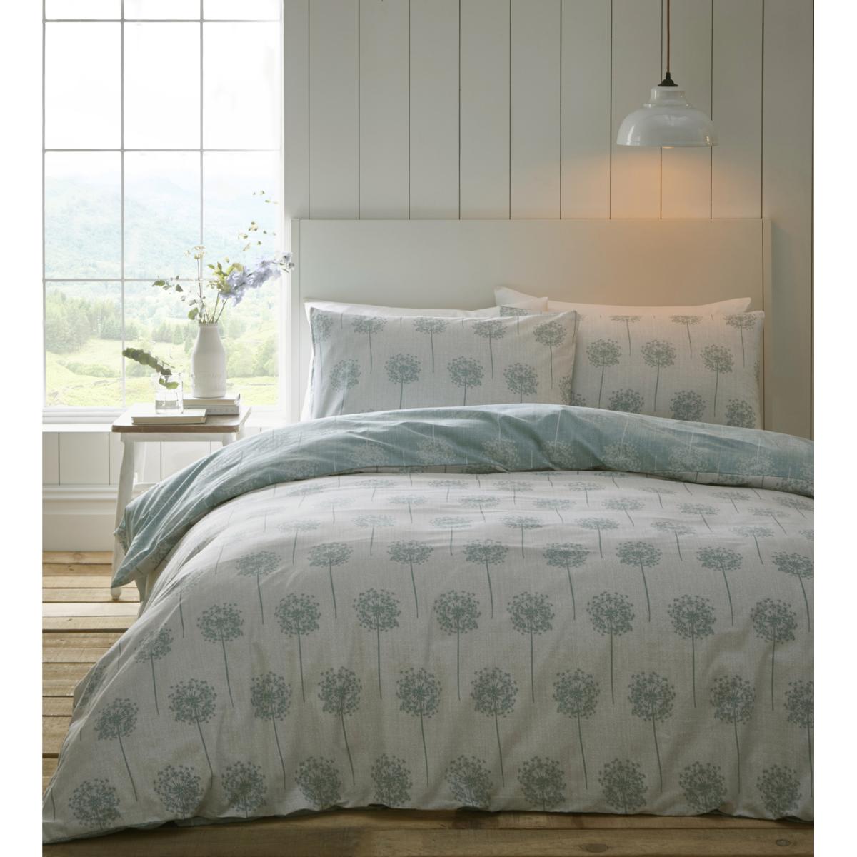 The pure elegance and simplicity of a delicate dandelion clock beautifully silhouetted and set upon a cotton textured backdrop, will create a light and breezy feel to your bedroom.