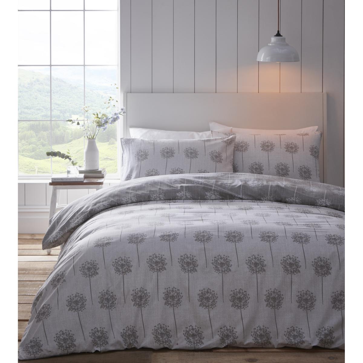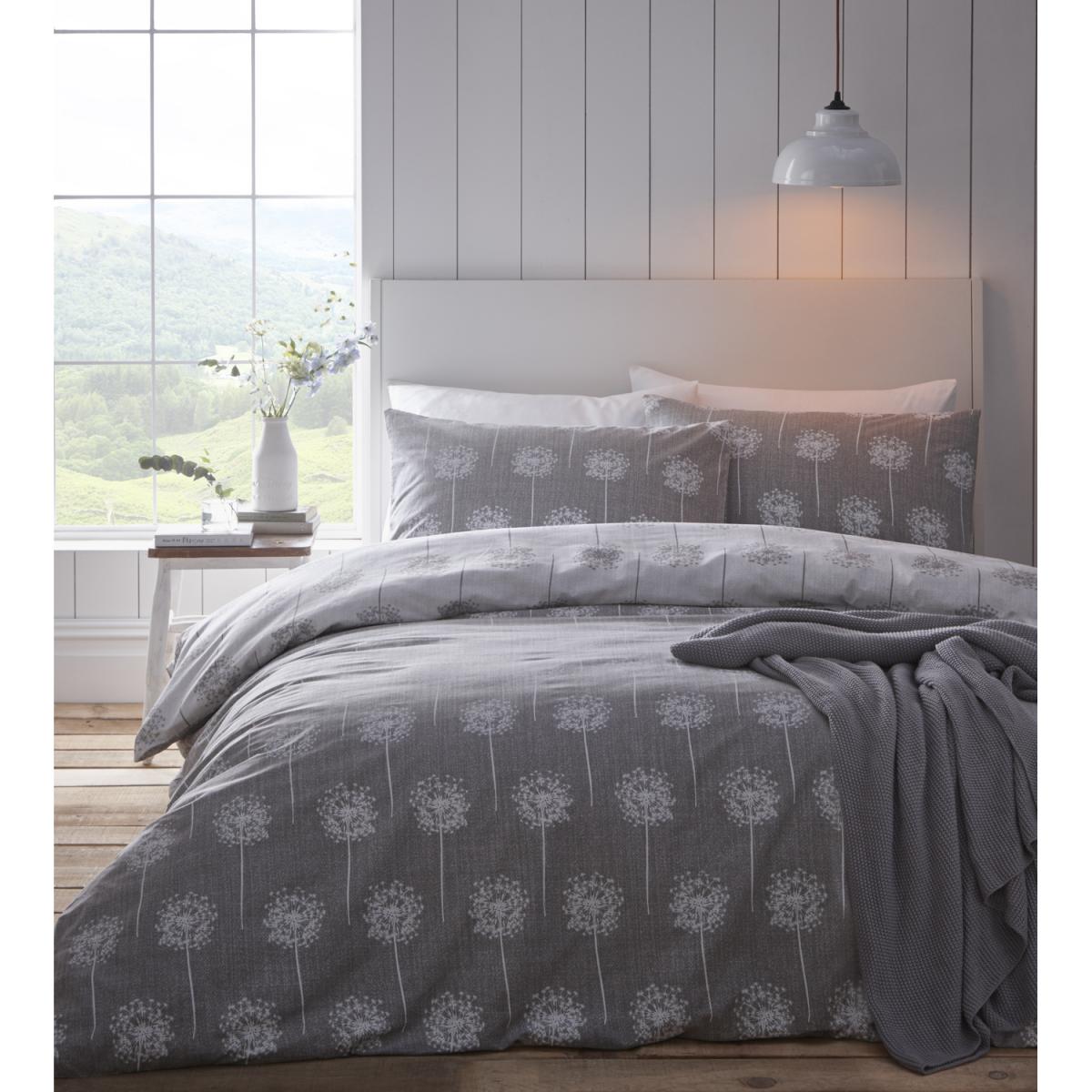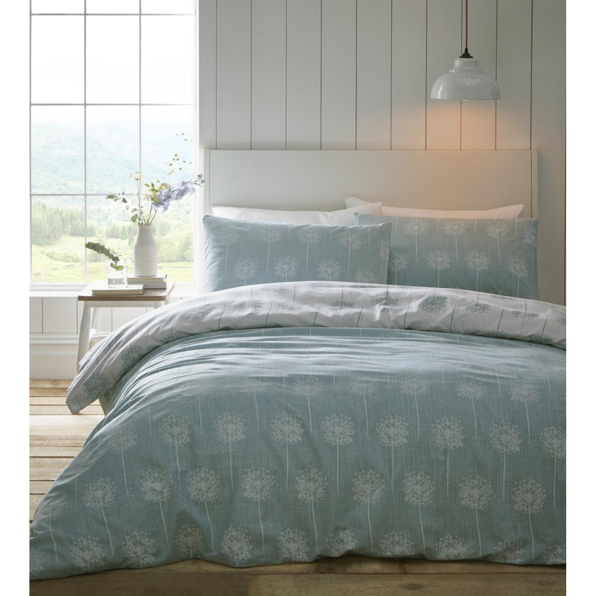 The pure elegance and simplicity of a delicate dandelion clock beautifully silhouetted and set upon a cotton textured backdrop, will create a light and breezy feel to your bedroom.