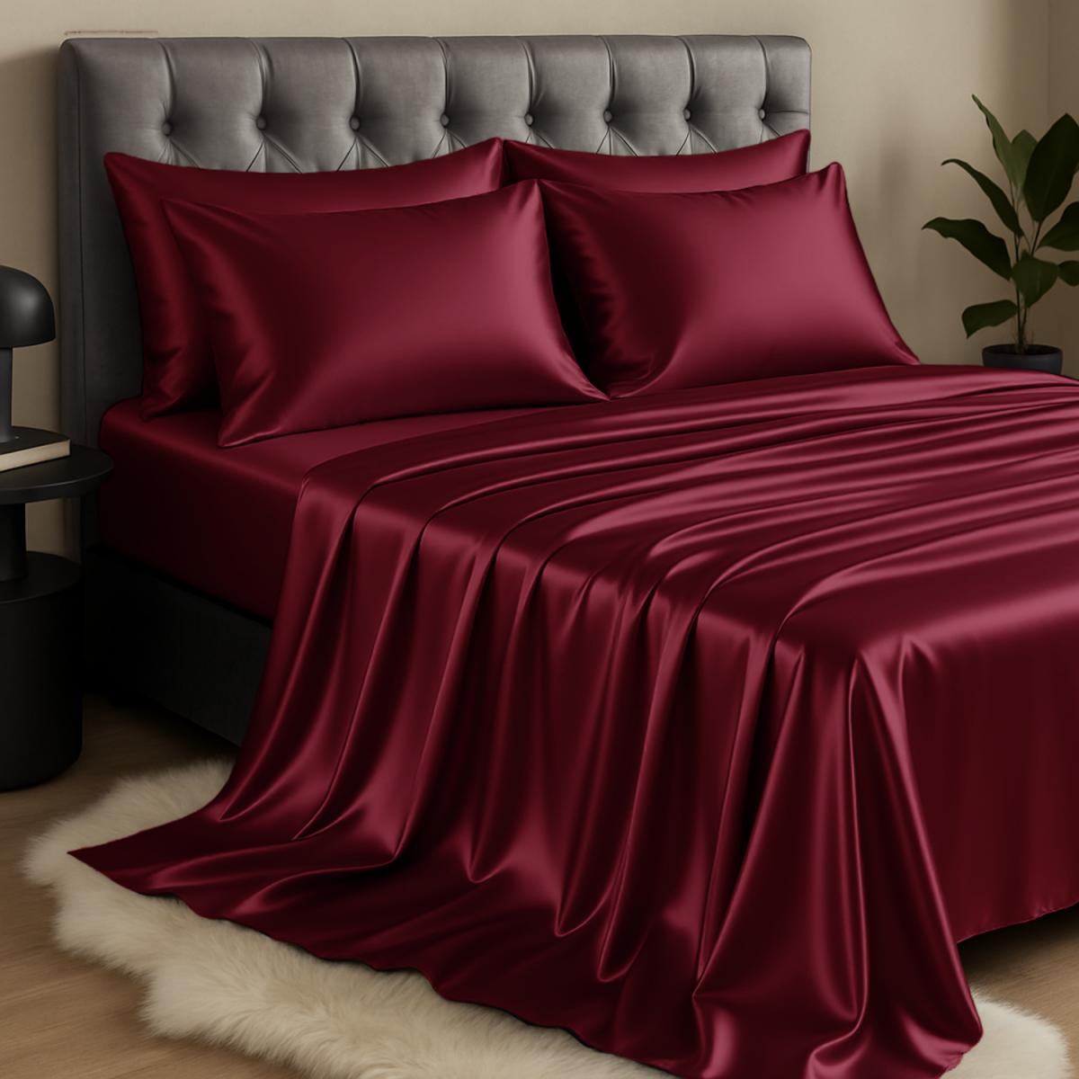 Silk Luxury Flat Sheet - Wine / Single